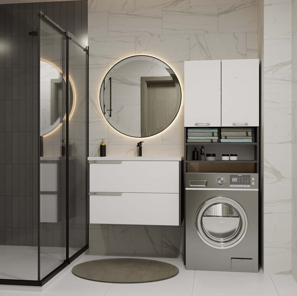 Moderní koupelnová skříňka Pema v minimalistickém designu je dokonalým řešením pro malé koupelny. Splní očekávání všech, kteří oceňují praktická řešení. Skříňka má 2 police skryté za dvířky, 2 police otevřené a je vyrobená ze snadno udržovatelné laminované desky. Hrany jsou povrchově upravené ABS plastem (vyznačuje se vysokou mechanickou a chemickou odolností).