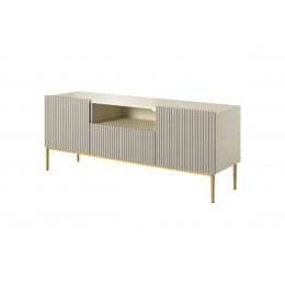 Objevte kouzlo moderního designu s TV komodou Nicole, která se stane středobodem vašeho obývacího pokoje. Tato komoda vyniká svým sofistikovaným vzhledem, který kombinuje jemný kašmírový odstín s elegantními zlatými nožkami. Je ideální volbou pro ty, kteří hledají stylový a praktický nábytek, který dodá jejich interiéru nádech luxusu.