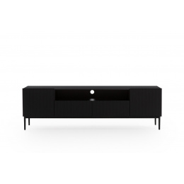 Hledáte skříňku, která ozdobí váš interiér? Máš dost otřepaných modelů, které potkáváš v každém druhém domě? Mám pro tebe něco speciálního! Tento elegantní a nesmírně reprezentativní nábytek v odstínu hluboké černé obohatí aranžmá interiérů udržovaných ve stylu glamour. Dodají jim zajímavý akcent a oslnivý lesk. Co více, jeho atraktivní design není jeho jedinou předností. Skříň díky velkému množství polic umístěných uvnitř se stává velmi funkčním modelem. Navíc má pevný rám a odolnou konstrukci. Stručně řečeno – vysněný nábytek. RTV skříňka 200 cm Nicole s rýhovaným čelem a zásuvkou - černý mat / černé nožky, Šířka: 200, Výška: 60, Hloubka: 45, Výška nožek: 20.