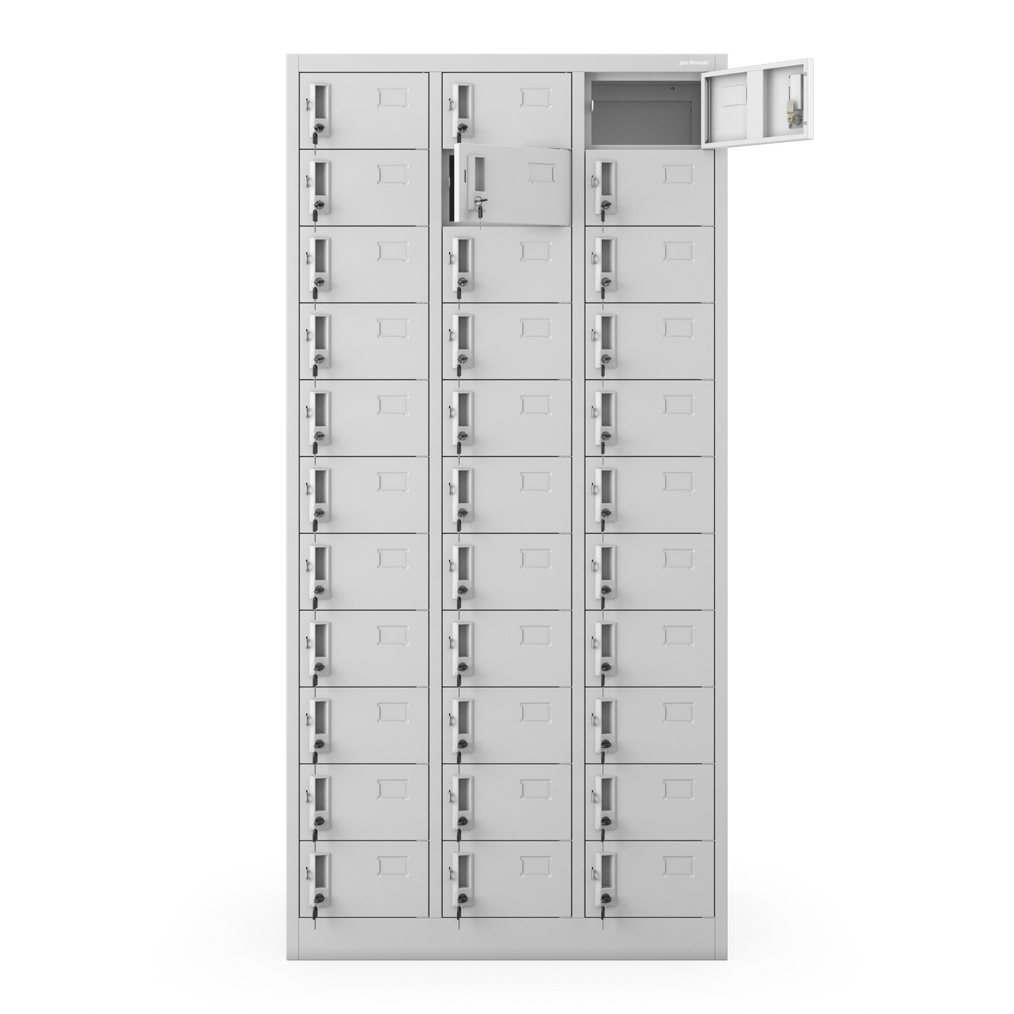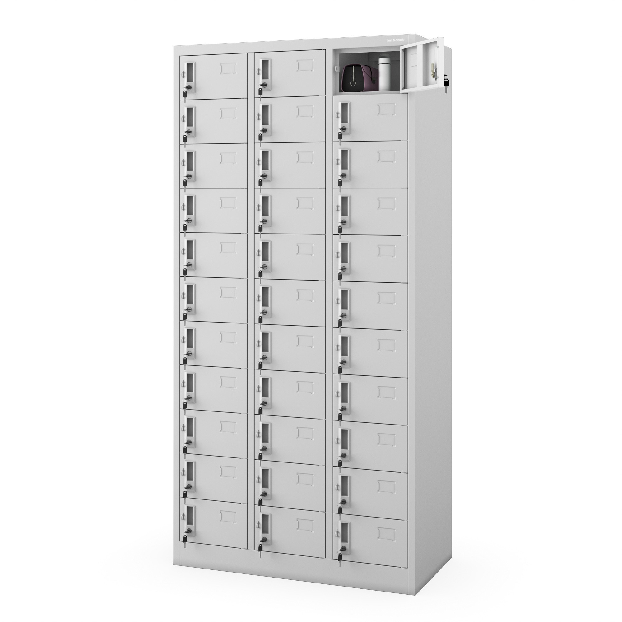 Skříňka model OLIVER Skříňka / 33 přihrádek / ocel 0,6 mm ŠEDÁ (RAL7035) Skříňka model OLIVER – snídaňová, kovová Představujeme OLIVER, multifunkční, dokonale organizovanou snídaňovou skříňku, se kterou se každodenní ukládání nejdůležitějších předmětů či potravin stane snadným a pohodlným. Díky kompaktním rozměrům a mimořádné funkčnosti naše skříňka pojme nejdůležitější osobní věci až třiceti tří osob! Každá schránka má silný, závorový zámek, který adekvátně zabezpečí obsah. Naše skříňka se osvědčí v hotelech nebo sociálních místnostech soukromých firem, protože v ní lze uchovávat osobní předměty jako peněženku či telefon. Umožňuje také shromažďování potravin ve školních nebo závodních jídelnách. Bude také spolehlivým a kompaktním řešením v každé kanceláři, která vyžaduje podrobnou třídění korespondence. Takové využití modelu OLIVER značně usnadní estetické vizitky na dvířkách každé ze schránek. Šatní skříň OLIVER – spolehlivá a všestranná NEJVYŠŠÍ KVALITA Bezpečnost každodenního používání a dlouhá léta odolnosti vůči mechanickému poškození zajišťuje práškově lakovaná ocel o tloušťce 0,6 mm. Pečlivé spojení konstrukčních prvků je zárukou nezbytné stability, díky které je každodenní používání skříně OLIVER také zcela bezpečné. KOMFORT POUŽÍVÁNÍ Až 33 uzamykatelných skříněk umožňuje bezpečně ukládat drobné osobní předměty nebo potraviny. Pro dodatečné zabezpečení můžete využít držák na visací zámek, abyste ještě lépe chránili své věci. Navíc je obsah chráněn před vlhkostí díky speciálním ventilačním otvorům v každé ze schránek. FUNKČNOST 90 cm šířky a až 33 schránek? Snídaňová skříň OLIVER je skvělým řešením i pro ty nejmenší prostory! Sociální skříň OLIVER – technické údaje Rozměry: • Barva: šedá (RAL7035) • Výška: 185 cm • Šířka: 90 cm • Hloubka: 45 cm • Hmotnost (včetně balení): 73 kg Rozměry schránky: • Výška: 13 cm • Šířka: 22 cm • Hloubka: 42 cm Spokojenost v ceně! • Naše skříňka poskytuje nezbytnou bezpečnost potvrzenou certifikátem PZH. • Model OLIVER umožňuje ukládat dokumenty obsahující osobní údaje, jako např. korespondenci, protože splňuje platné zásady GDPR. • Záruka kvality. Navíc: • Snadná, samostatná montáž Značka – dlouhá léta spokojenosti, kterou zajišťuje jeden z největších výrobců skříní