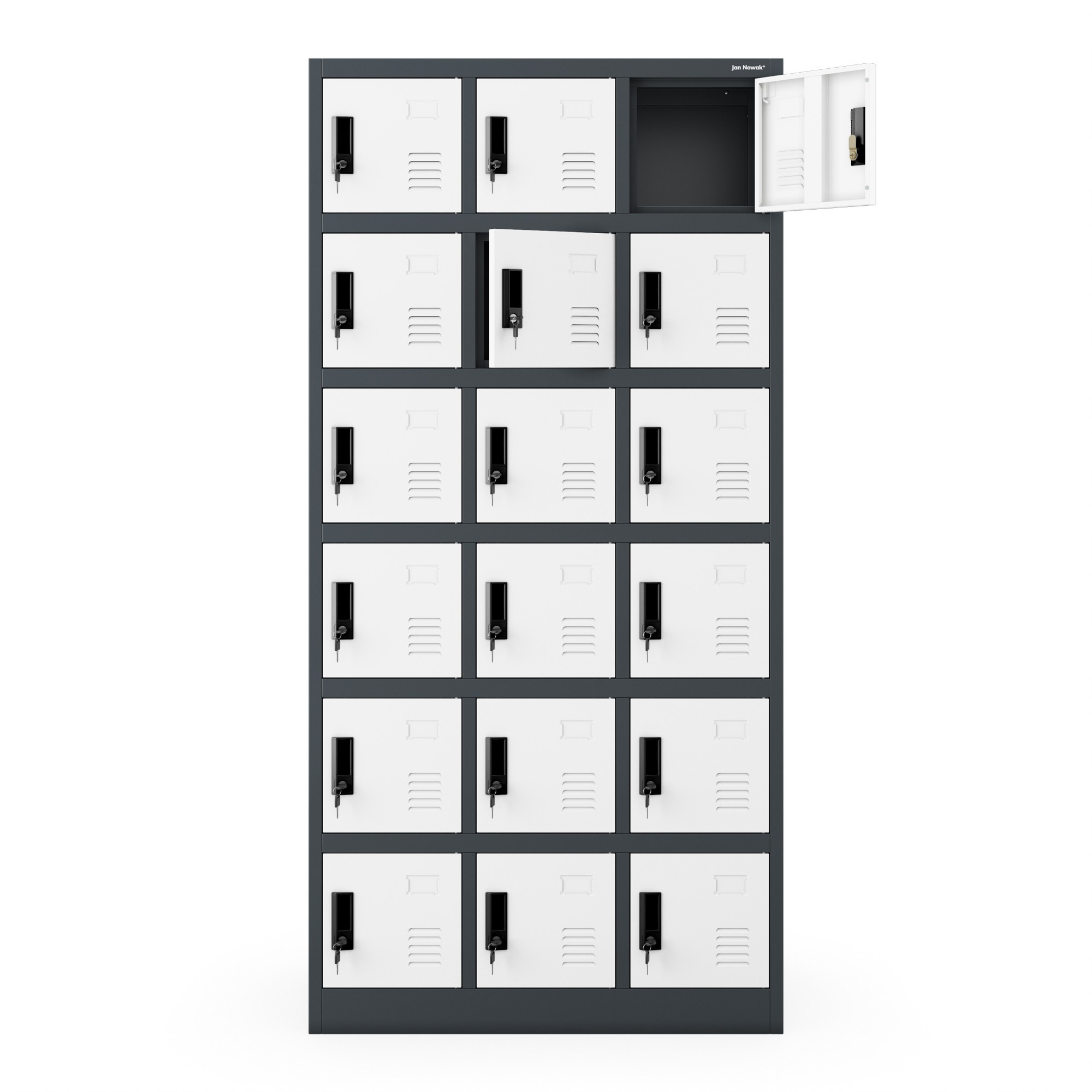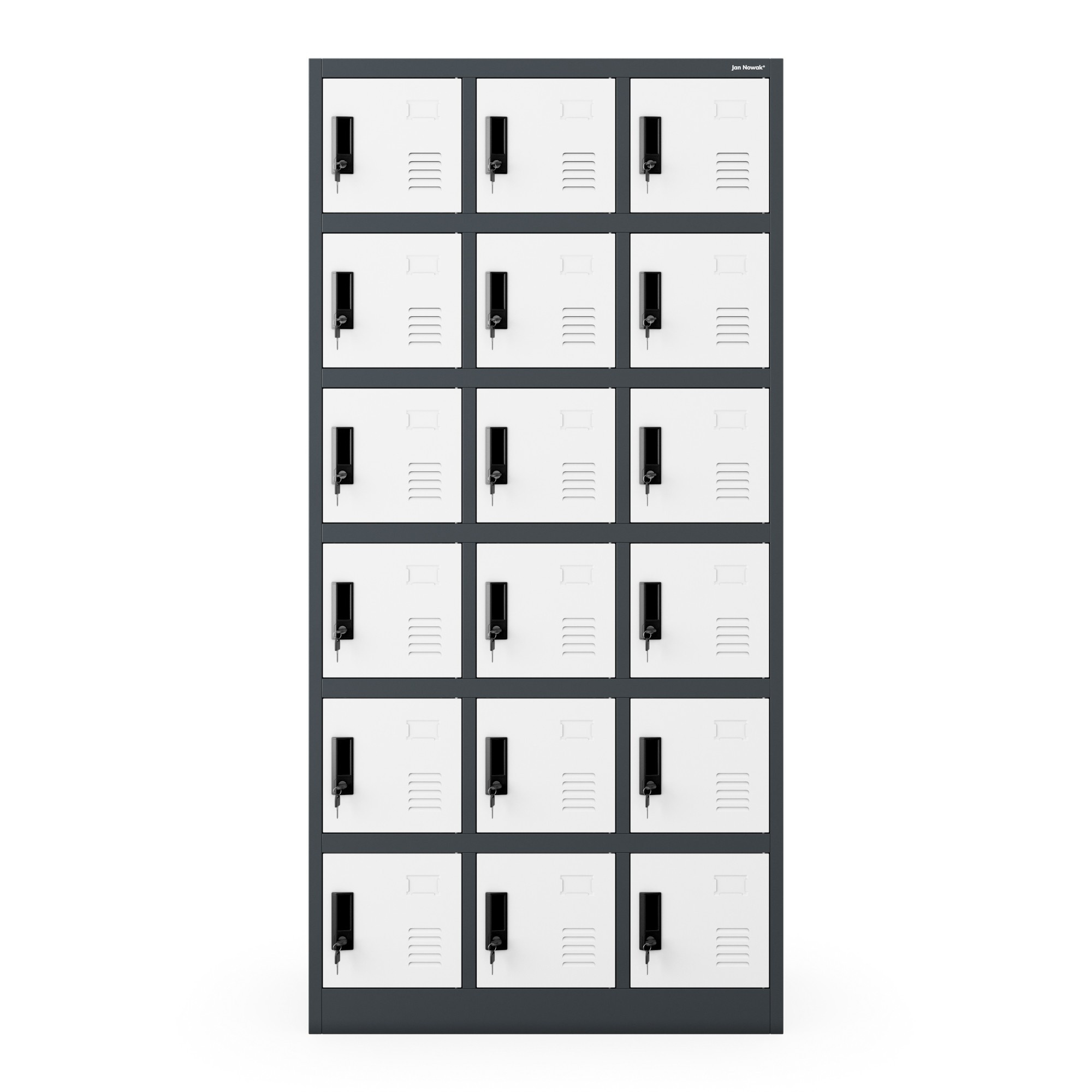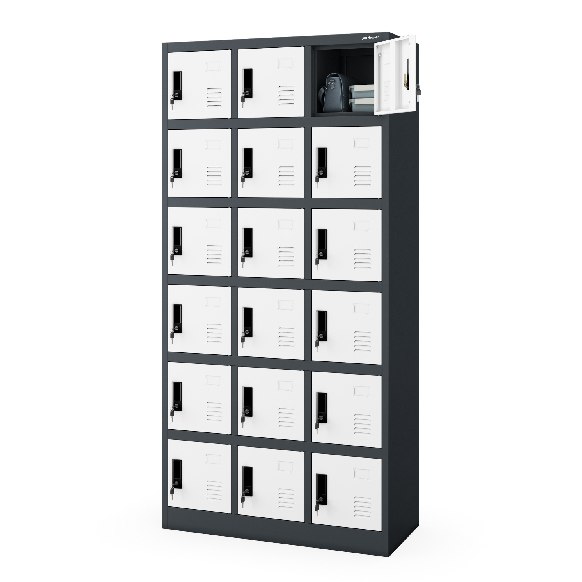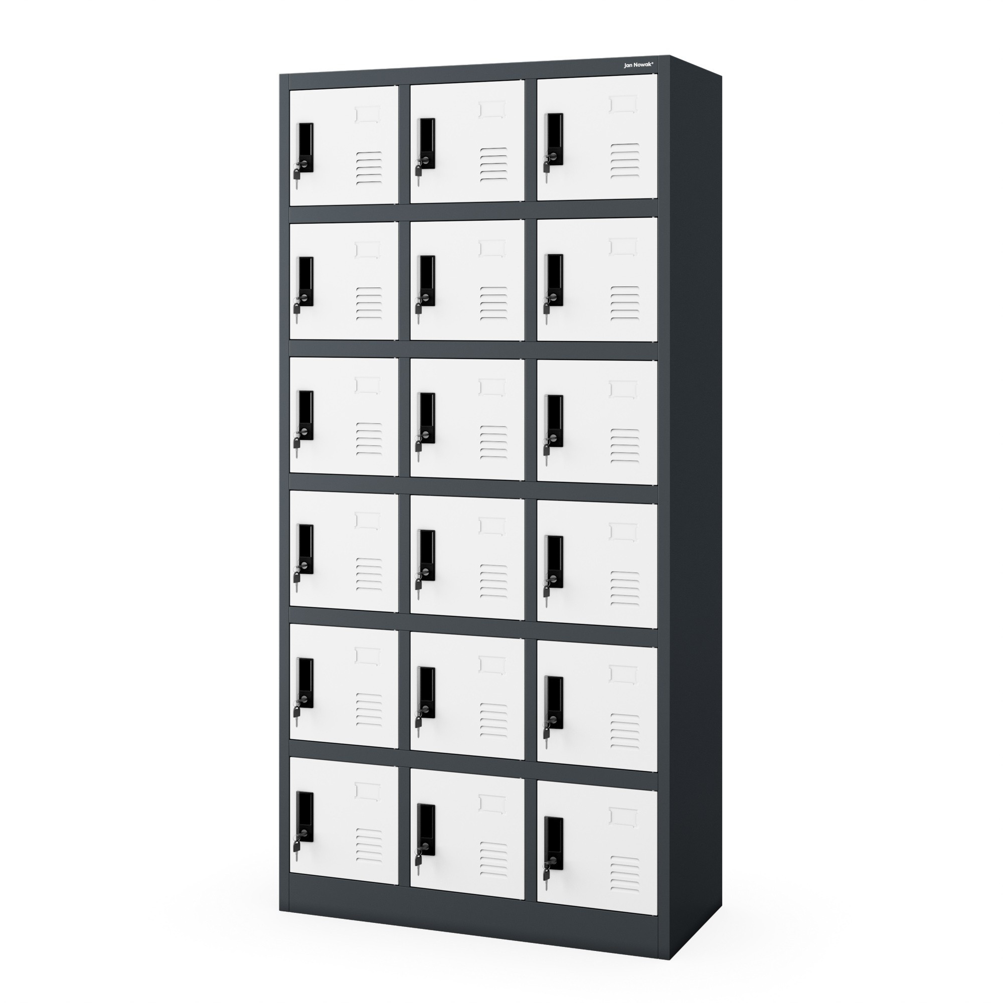 Antracitově-bílá sociální skříň model KAROL - na oděvy, na dokumenty, 18 skříněk, do dílny, do firmy KAROL – ocelová sociální skříň Pokud si ceníte pohodlí a ergonomie práce v každé její fázi, sociální skříň KAROL je stvořena pro vaši firmu. Vybavte svou šatnu nejkvalitnějším nábytkem od polského výrobce a užívejte si až šestiletou záruku. Sociální skříň KAROL má mnoho využití: • doporučována pro klienty poliklinik nebo nemocnic, fitness klubů, posiloven, bazénů, kin, obchodů, hotelů • osvědčí se při každodenním používání zaměstnanci stavebních firem, autoservisů, výrobních závodů a kanceláří • osmnáct uzamykatelných skříněk umožňuje ukládat osobní věci nebo dokumenty způsobem, který je dostatečně chrání před přístupem neoprávněných osob Kompaktní sociální skříň KAROL – nejvyšší kvalita za rozumnou cenu Kovová sociální skříň KAROL je kombinací kompaktních rozměrů a plné funkčnosti. Má pouze 90 cm na šířku, ale pojme až 18 skříněk vybavených vizitkáři. Ideálně se hodí do menších sociálních místností nebo šaten, které vyžadují větší množství skříněk bez zbytečné ztráty prostoru. Produkt byl obohacen o speciální otvory, díky kterým je možná stálá ventilace obsahu skříněk. Výjimečně odolná a pevná šatní skříň KAROL je vyrobena z práškově lakované oceli o tloušťce 0,6 mm. Tento produkt je odolný vůči mechanickému poškození, což potvrzuje až šestiletá záruka. Skříň umožňuje ukládání dokumentace v souladu s pravidly GDPR z roku 2018. • FUNKČNÍ šatní skříň KAROL je kombinací kompaktních rozměrů a optimálního úložného prostoru • PLNĚ BEZPEČNÁ každá z přihrádek je uzamykatelná silným, zajištěným zámkem • VZDUŠNÁ šatní skříň KAROL zajišťuje potřebnou cirkulaci vzduchu uvnitř skříněk díky speciálním ventilačním otvorům • SPOLEHLIVÁ model KAROL má odolné a stabilní tělo vyrobené z pevně spojených ocelových prvků, díky čemuž je naše šatní skříň nábytkem na dlouhá léta • STYLOVÁ kombinuje tradiční elegantní formu a moderní barevné kombinace Šatní skříň KAROL – parametry • Hmotnost (včetně balení): 56 kg • Barva: antracitově bílá RAL 7016 - RAL 9003 • Výška: 185 cm • Šířka: 90 cm • Hloubka: 40 cm Rozměry jednotlivé přihrádky: • Hloubka: 40 cm • Výška: 23 cm • Šířka: 23 cm S námi získáte: • Záruka kvality! • Atraktivní cenu • Soulad s předpisy GDPR 2018 • Certifikát PZH Stojí za to vědět: • Doprava již od 115 Kč • Jednoduchá, rychlá, samostatná montáž • Přehledný návod v balení Kancelářský nábytek Značka – jeden z největších distributorů kovových skříní v celé Evropě.