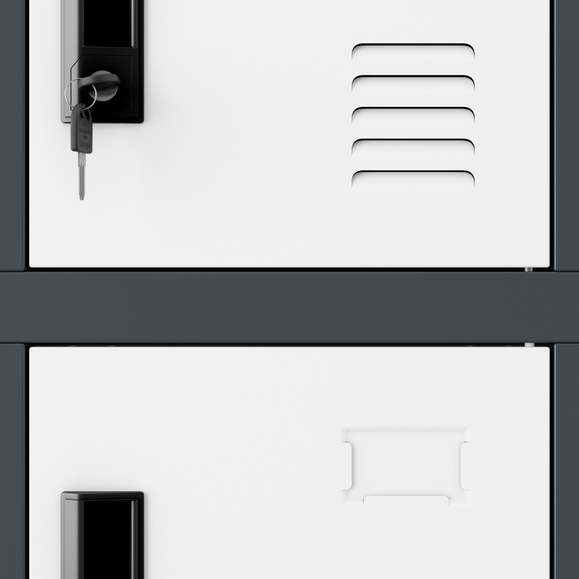 Plechová uzamykatelná šatní skříňka na soklu KAROL, 900 x 1850 x 400 mm, antracitovo-bílá