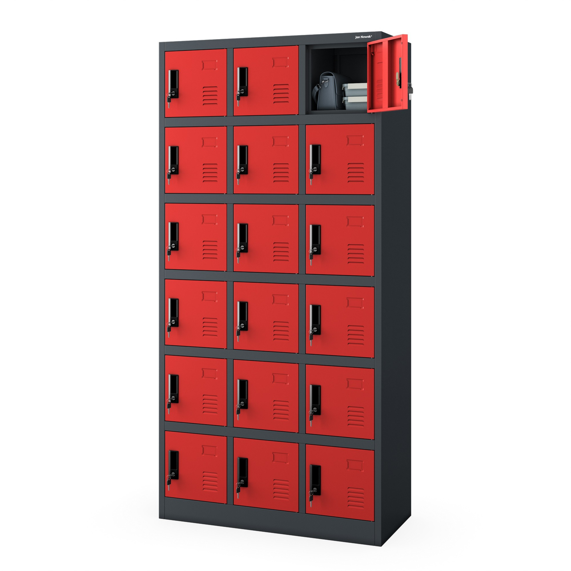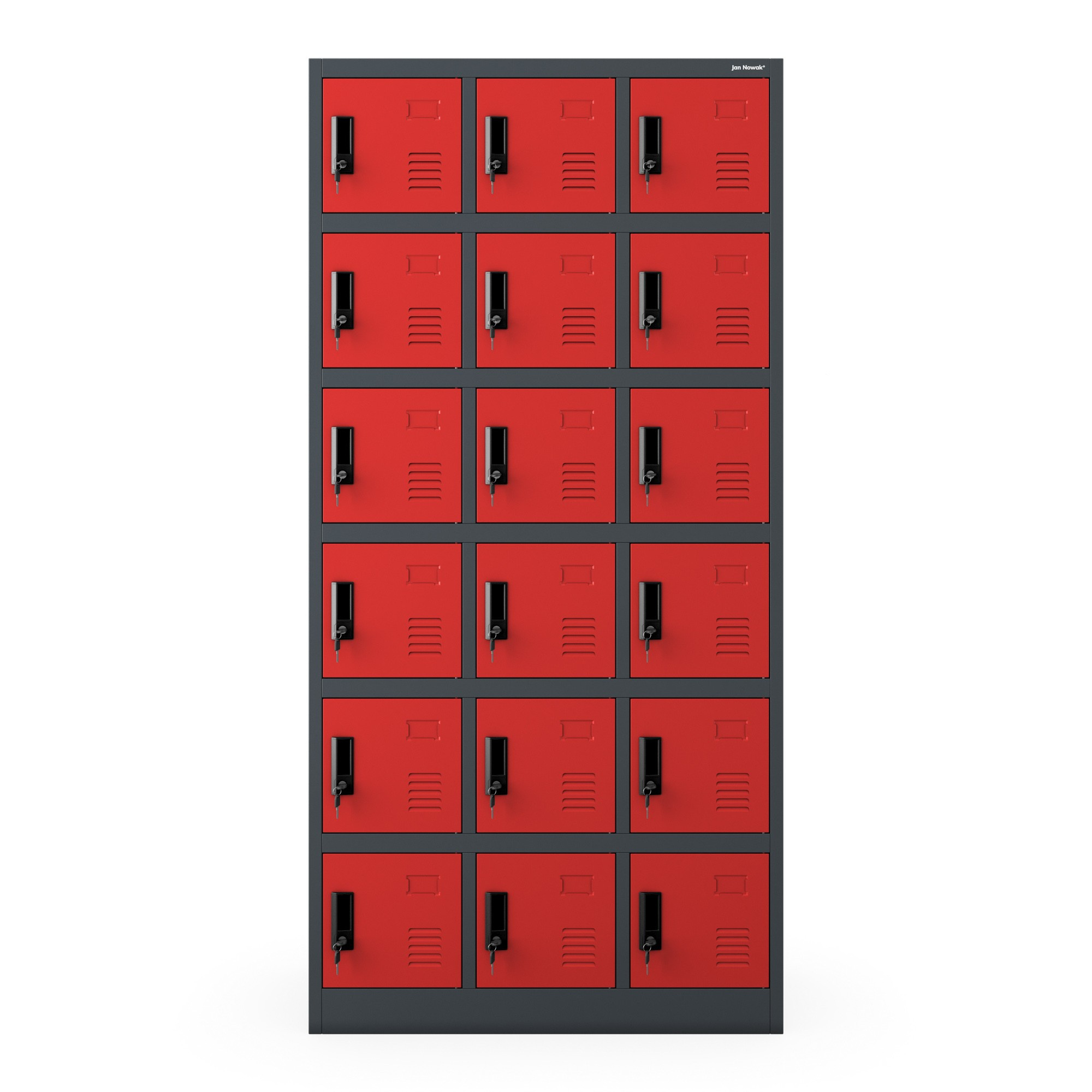 Antracitově-červená sociální skříň model KAROL - na oděvy, na dokumenty, 18 skříněk, 90 cm, do dílny, do firmy KAROL – kovová sociální skříň Moderní, prostorná sociální skříň KAROL v antracitově-červené barvě byla navržena s ohledem na nestandardní interiéry. Pokud chcete proměnit svou společenskou místnost nebo šatnu bez zbytečné ztráty prostoru, tento model se osvědčí ideálně. Spojuje v sobě klasický styl s neobvyklou barevností a vysoce kvalitními detaily, a navíc je kompaktní a pevný. To vše činí skříň KAROL výjimečnou a neobvyklou. Sociální skříň KAROL má mnoho využití: • má uzamykatelné skříňky, které umožňují ukládat osobní věci nebo dokumenty způsobem, který je vhodně chrání před přístupem neoprávněných osob • uspokojí zákazníky sportovních klubů, posiloven, plaveckých bazénů, kin, obchodů, hotelů • osvědčí se v šatnách stavebních firem, autoservisů, výrobních závodů nebo kanceláří. Solidní sociální skříň KAROL, moderní a spolehlivá Sociální skříň KAROL spojuje neotřelý design a velkou funkčnost. Její šířka je pouhých 90 cm, přesto obsahuje až 18 prostorných, uzamykatelných schránek na různé druhy oblečení, doplňky nebo dokumenty. Díky tak kompaktní konstrukci se skříň osvědčí především v šatnách nebo společenských místnostech s malou plochou. Velkou předností modelu KAROL je trvanlivá a pevná konstrukce. Naše sociální skříň byla vyrobena z práškově lakované oceli o tloušťce 0,6 mm. Tento produkt je odolný vůči mechanickému poškození. Na každé ze skrýší se nachází vizitkář. • PŘIZPŮSOBENÁ VAŠIM POTŘEBÁM sociální skříň KAROL je kombinací kompaktních rozměrů a optimálního úložného prostoru • VYSOKÁ KVALITA PROVEDENÍ má odolný a stabilní korpus vyrobený z pevně spojených ocelových prvků • VYTVOŘENÁ S OHLEDEM NA VAŠE POHODLÍ naše sociální skříň zajišťuje potřebnou cirkulaci vzduchu uvnitř skříněk díky speciálním ventilačním otvorům • MODERNÍ A AKTUÁLNÍ každá z přihrádek je uzamykatelná silným, zajištěným zámkem, což zajišťuje, že ukládání dokumentů v ní je v souladu s pravidly GDPR 2018. • ZVLÁŠTĚ VÝJIMEČNÁ Sociální skříň KAROL spojuje tradiční, elegantní formu s moderní barevnou kombinací Sociální skříň KAROL – parametry • Hmotnost (včetně balení): 56 kg • Barva: antracitově červená RAL 7016 - RAL 9003 • Výška: 185 cm • Šířka: 90 cm • Hloubka: 40 cm Rozměry jednotlivé schránky: • Hloubka: 40 cm • Výška: 23 cm • Šířka: 23 cm Získejte jistotu nejlepšího rozhodnutí: • Záruka kvality! • Atraktivní cena • Soulad s předpisy GDPR 2018 • Certifikát PZH Stojí za to vědět: • Doprava již od 115 Kč • Jednoduchá, rychlá, samostatná montáž • Přehledný návod v balení Kancelářský nábytek Značka – jeden z největších distributorů kovových skříní v celé Evropě.