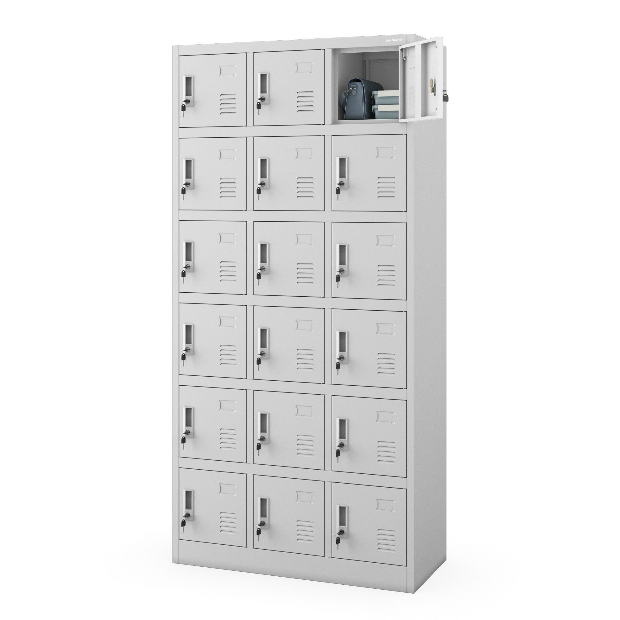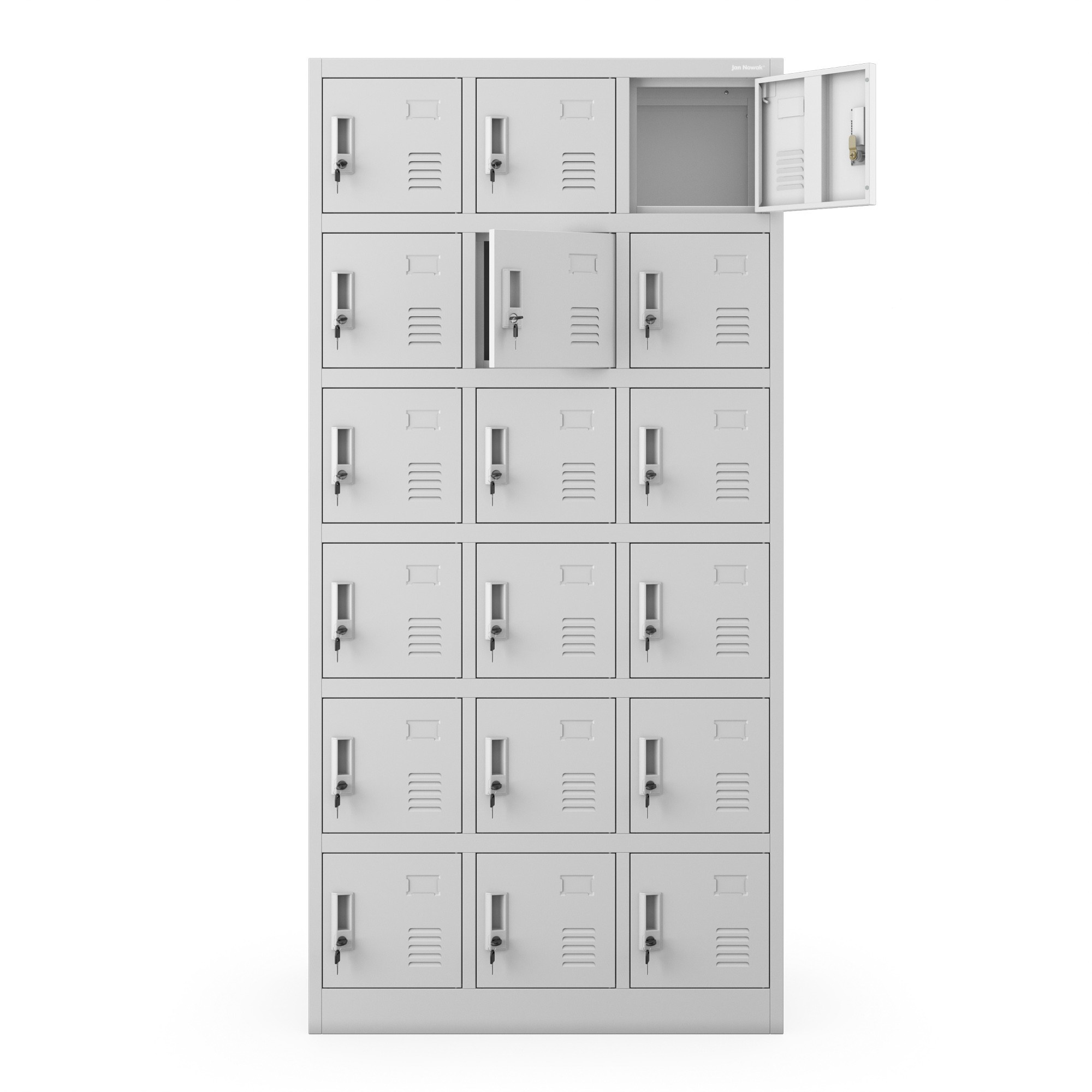 Šedá sociální skříň model KAROL - skříňka BHP na oděvy, na dokumenty, 18 skříněk, do dílny, do firmy, 90 cm KAROL – kovová sociální skříň Sociální skříň KAROL bude ideálním řešením pro prostory s omezenou plochou. Kompaktní a funkční, osvědčí se jako místo pro ukládání oblečení nebo osobních předmětů jak pro zaměstnance, tak pro klienty vaší firmy. Na dvířkách každé ze skříněk se nachází vizitkář. Skříň sociální KAROL má mnoho využití: • umožní ukládání osobních věcí zaměstnancům výrobních závodů, dílen nebo stavebních firem • schránky budou vhodné pro zákazníky sportovních klubů, posiloven, bazénů, kin, obchodů, nákupních center, hotelů, zdravotnických zařízení nebo nemocnic • hluboké, uzamykatelné skříňky umožňují bezpečné ukládání oblečení, pracovního a sportovního oděvu, nářadí, osobních předmětů a dokumentů všude tam, kde je nutné je chránit před přístupem nežádoucích osob. V sadě se navíc nachází univerzální klíč, který otevře každou ze schránek. Multifunkční sociální skříň KAROL – bezpečná a kompaktní Sociální skříň KAROL je produkt malých rozměrů vytvořený s ohledem na sociální místnosti s malou plochou nebo šatny, které vzhledem ke svému účelu vyžadují velké množství úložných prostor. Naše sociální skříň byla vyrobena z tlustého ocelového plechu (0,6 mm) lakovaného práškovou barvou. Má výjimečnou odolnost proti mechanickému poškození, což je obzvláště důležité při intenzivním používání. Model je vybaven 18 prostornými skříňkami uzamykatelnými na klíč, což umožňuje ukládání nejen oblečení či cenných předmětů, ale také různých dokumentů - v souladu s požadavky GDPR 2018. Sociální skříň KAROL byla obohacena o ventilační otvory, které zajišťují nezbytnou cirkulaci vzduchu uvnitř všech přihrádek. • Úložná šířka naší BHP skříně je pouhých 90 cm, avšak bez problémů pojme oblečení či osobní věci až osmnácti osob! • PEVNÁ sociální skříň KAROL vyrobená z pevného ocelového plechu o tloušťce 0,6 mm, má mimořádně stabilní konstrukci • BEZPEČNÁ každá z přihrádek je uzamykatelná silným, zajištěným zámkem • VĚTRANÁ naše sociální skříň má otvory zajišťující odpovídající cirkulaci vzduchu uvnitř skříněk, díky čemuž uložené předměty nebudou vlhké Sociální skříň KAROL – technické údaje • Hmotnost (včetně balení): 56 kg • Barva: šedá RAL 7035 • Výška: 185 cm • Šířka: 90 cm • Hloubka: 40 cm Rozměry jednotlivé přihrádky: • Hloubka: 40 cm • Výška: 23 cm • Šířka: 23 cm Navíc: • Záruka kvality! • Výjimečně výhodná cena • Soulad s předpisy GDPR 2018 • Certifikát PZH Stojí za to vědět: • Doprava již od 115 Kč • Jednoduchá, rychlá, samostatná montáž • Přehledný návod v balení Značka – jeden z největších distributorů kovových skříní v celé Evropě.