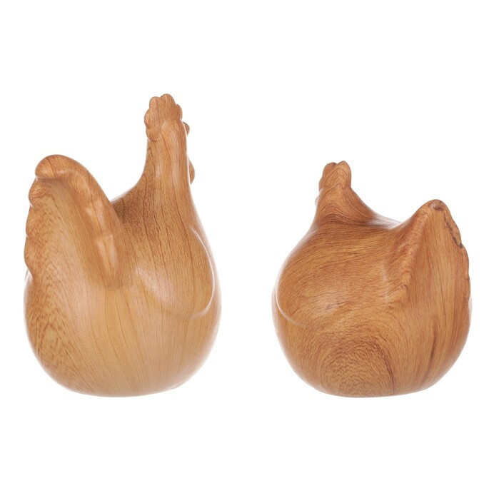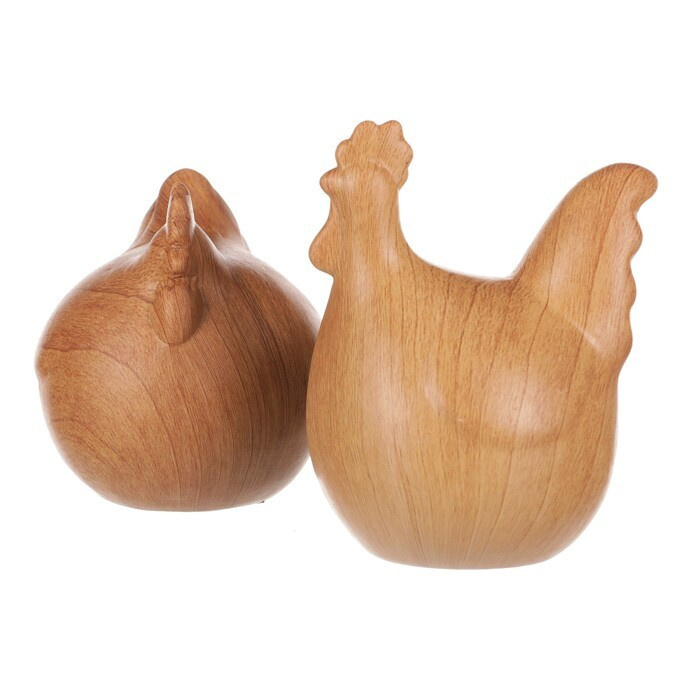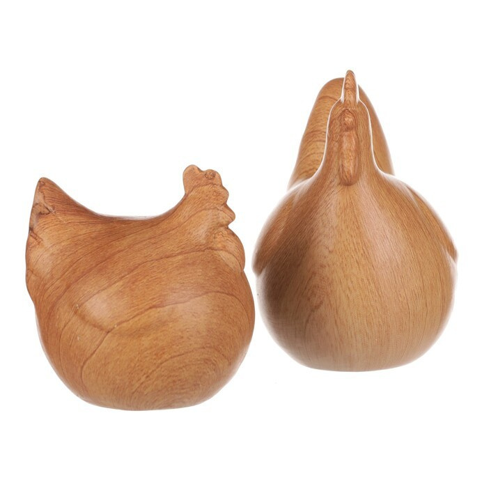 Dřevěné figurky kohouta a slepičky jsou krásným, přírodním doplňkem velikonoční výzdoby. Jejich zpodobnění je jednoduché, bez detailů, což z nich činí univerzální a vysoce elegantní ozdobný prvek. Nádherná, přírodní barva dřeva s viditelnými letokruhy umocňují jedinečnost a půvab těchto neživých opeřenců. Skvěle se hodí do chalup, nebo chat, kde je interiér laděný do přírodního designu. Na druhou stranu, v moderním prostředí budou úžasně kontrastovat a vynikne v něm jejich silueta a půvab dřeva. V jednoduchosti je krása, a u těchto figurek to platí obzvláště. Vaše jarní výzdoba díky nim získá nový, svěží vzhled jednoduše a hravě.