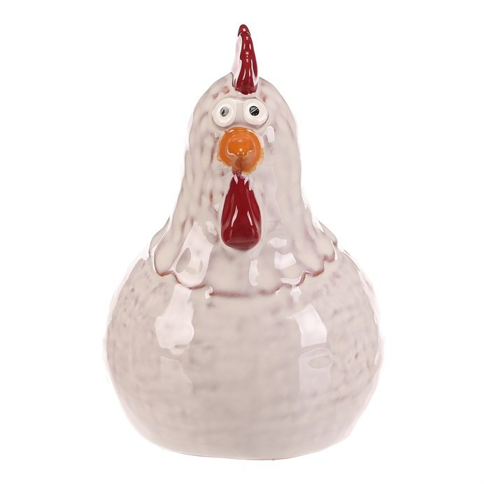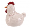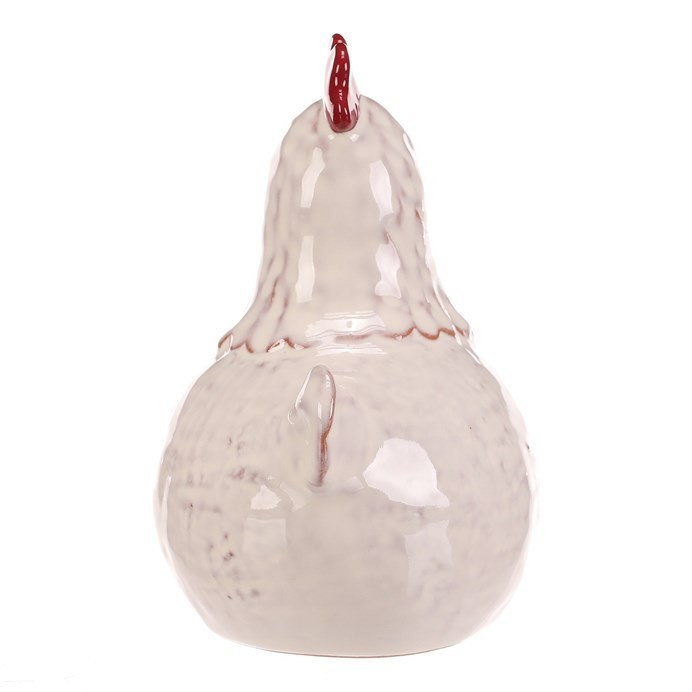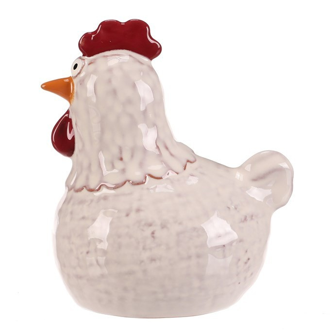 Keramická figurka slepičky v bílé barvě představuje dekorativní prvek vhodný pro umístění na poličku, komodu či stůl. Lesklý povrch zdůrazňuje detailní zpracování tvaru i barevných akcentů na hřebenu a zobáku. Velikost L umožňuje výraznější vizuální efekt v interiéru, kde přispívá k příjemné atmosféře. Figurku lze snadno kombinovat s dalšími dekoracemi v rustikálním i moderním stylu.