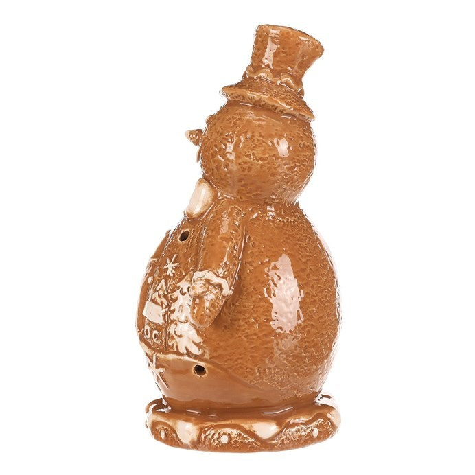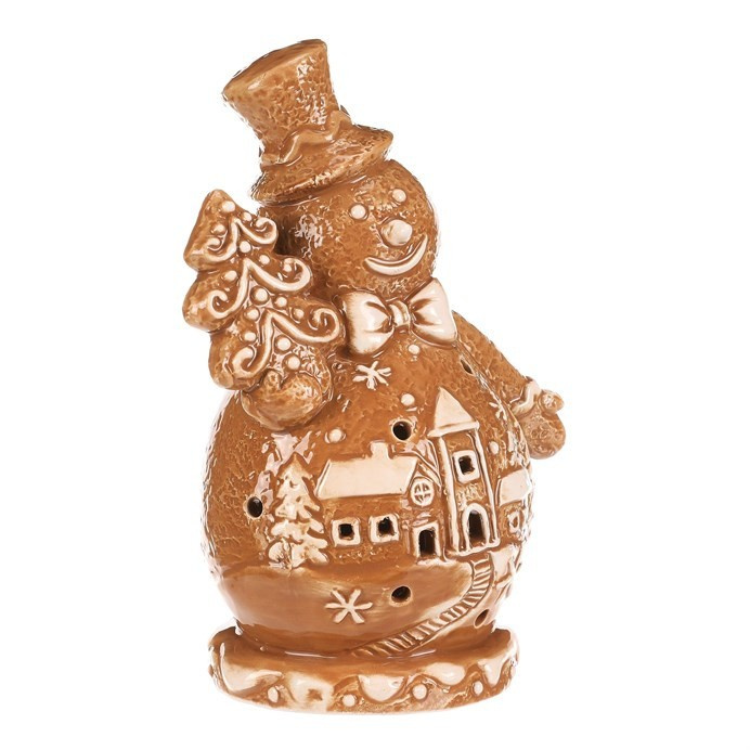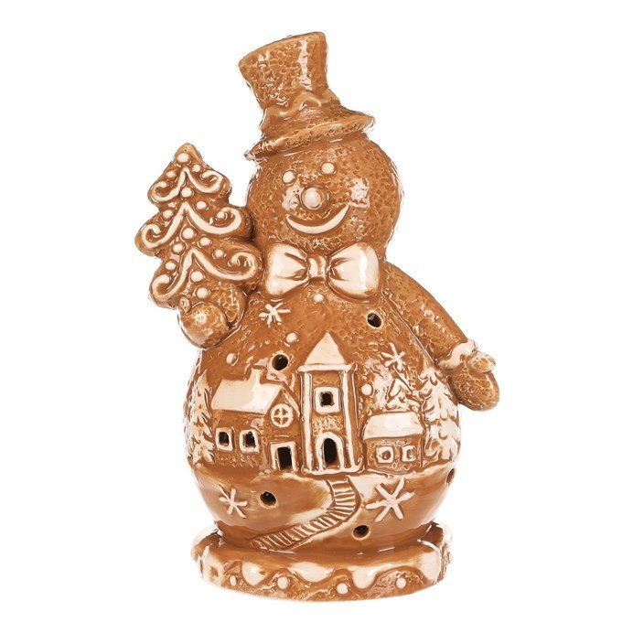 Sněhulák perníkový - keramika, LED osvětlení, hnědý