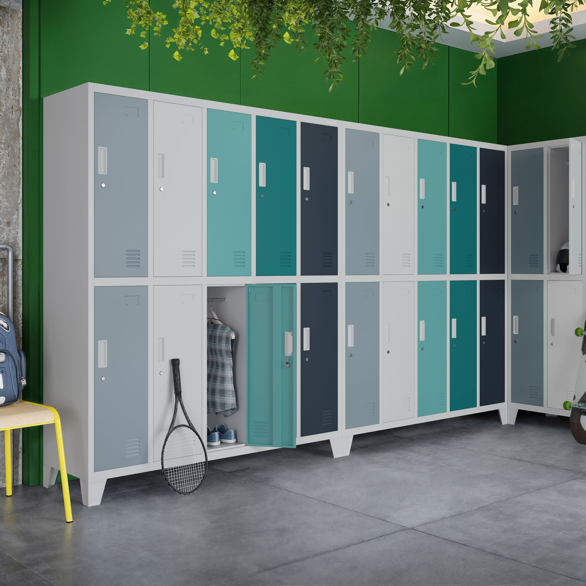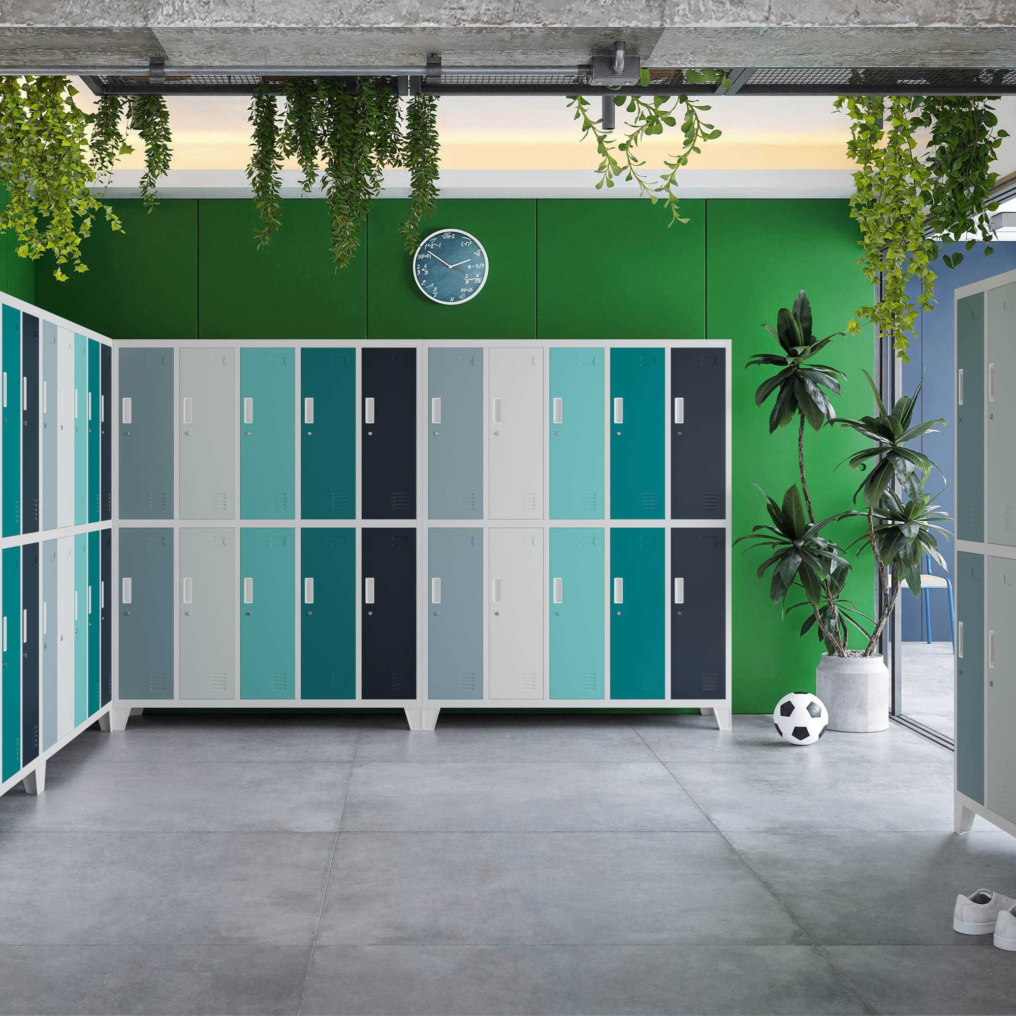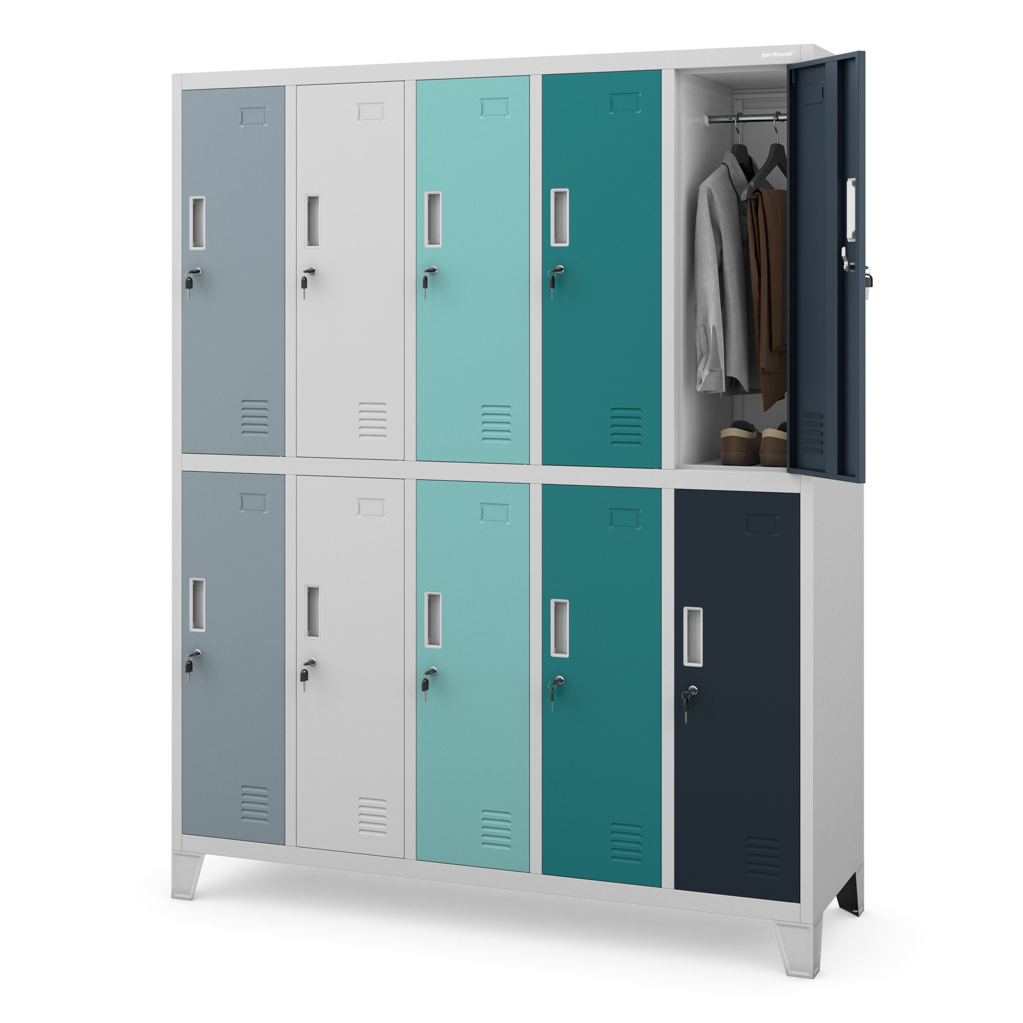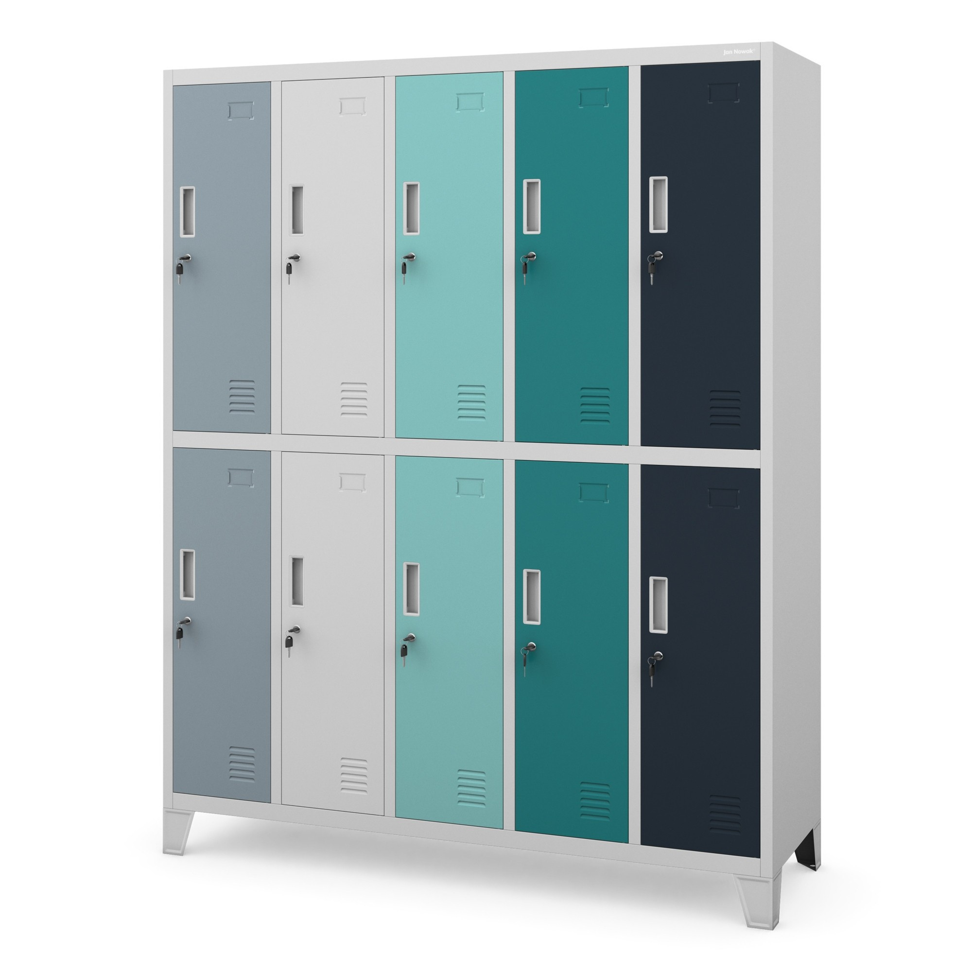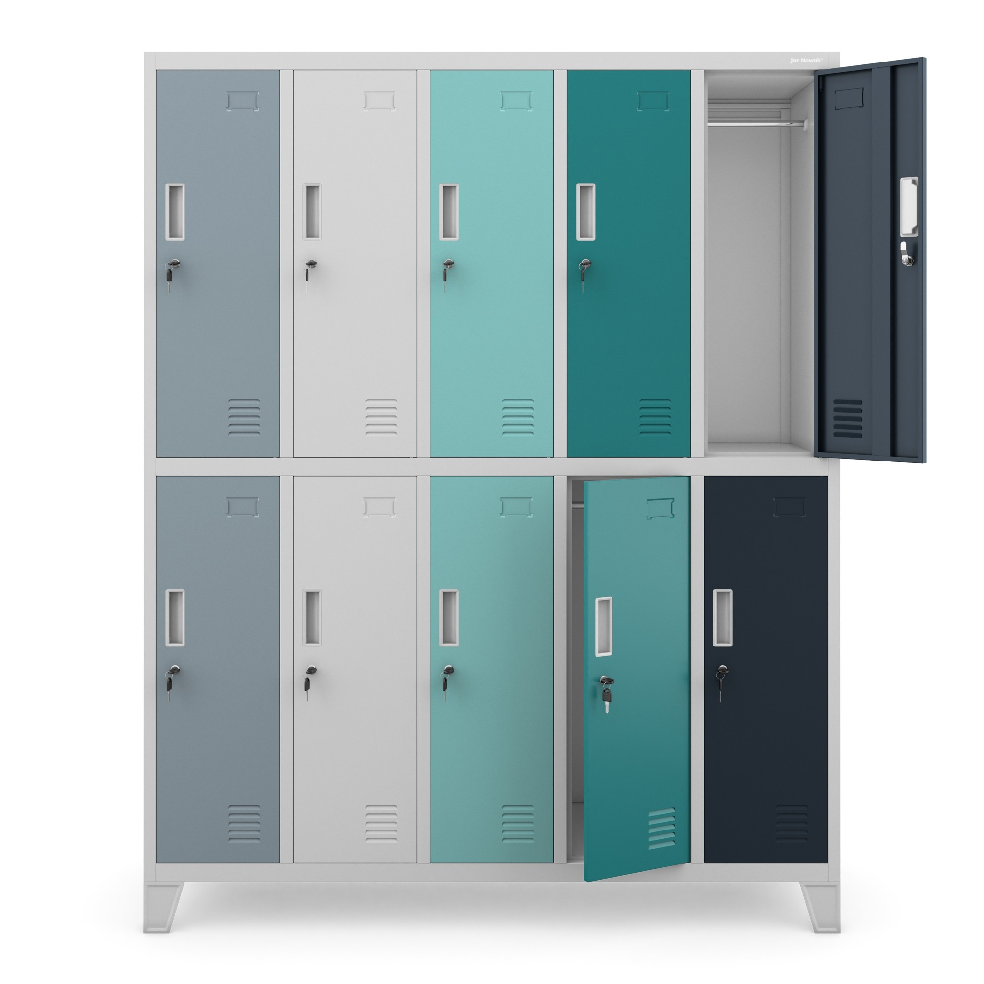 Kovová uzamykatelná šatní skříňkas 10 boxy BARTEK, 1360 x 1720 x 450 mm, šedo-vicebarevná