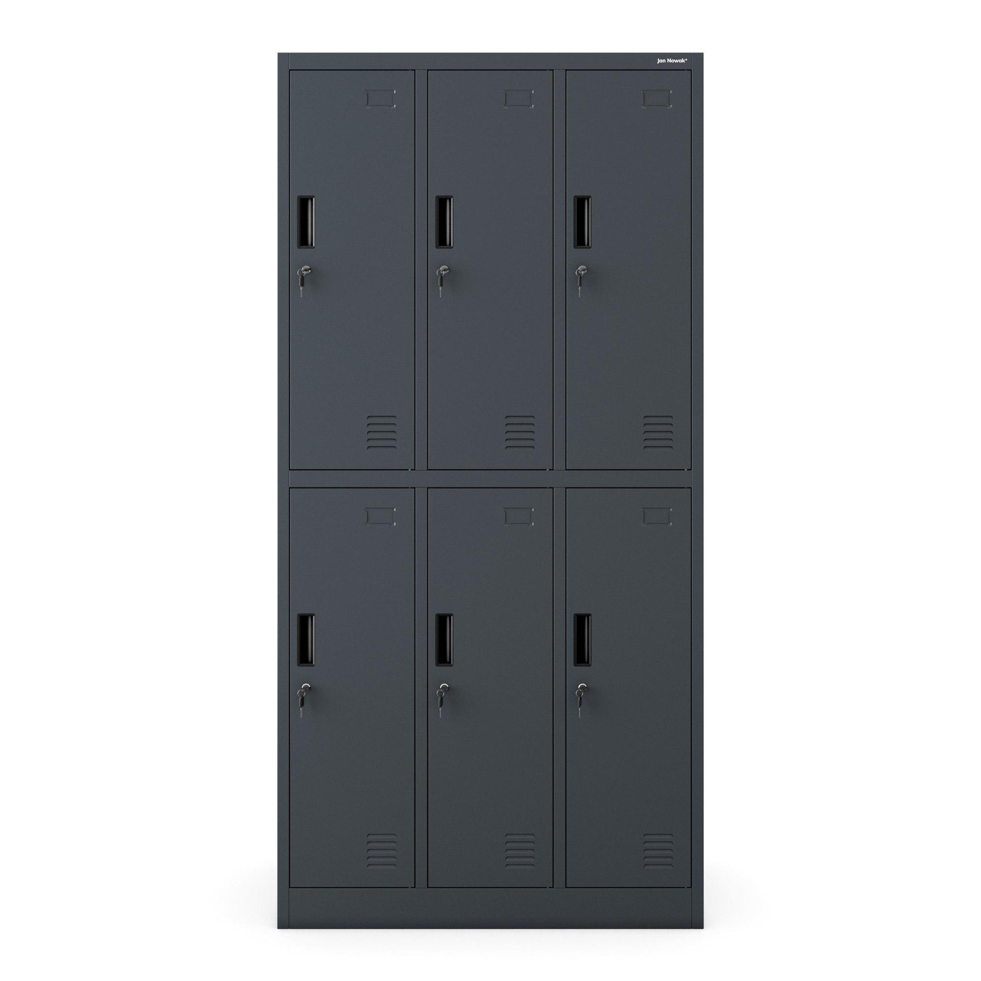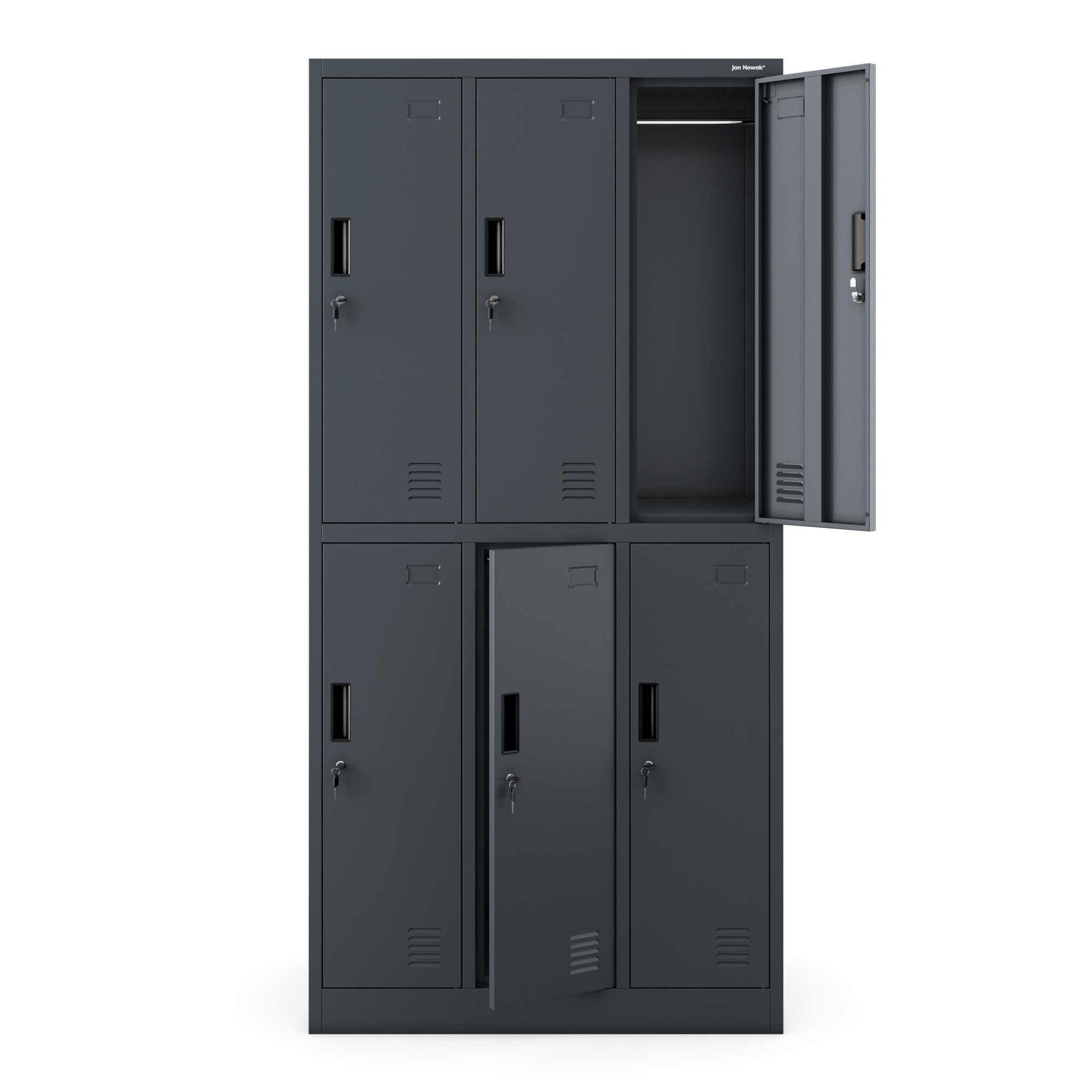 Kovová uzamykatelná šatní skříňka antracit: s 6 boxy IGOR, 900 x 1850 x 450 mm