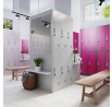 Kovová uzamykatelná šatní skříňka fuchsiová: s 6 boxy IGOR, 900 x 1850 x 450 mm