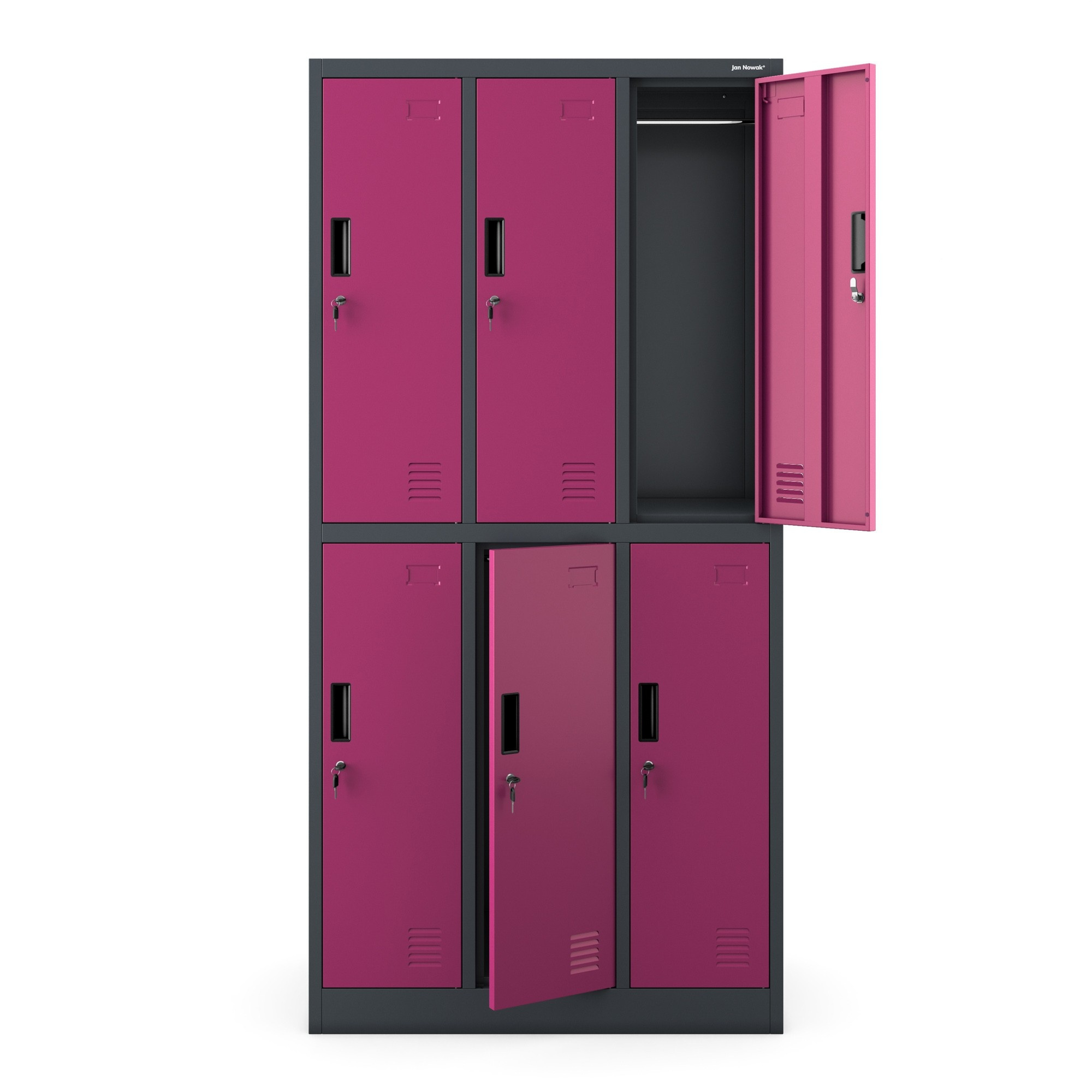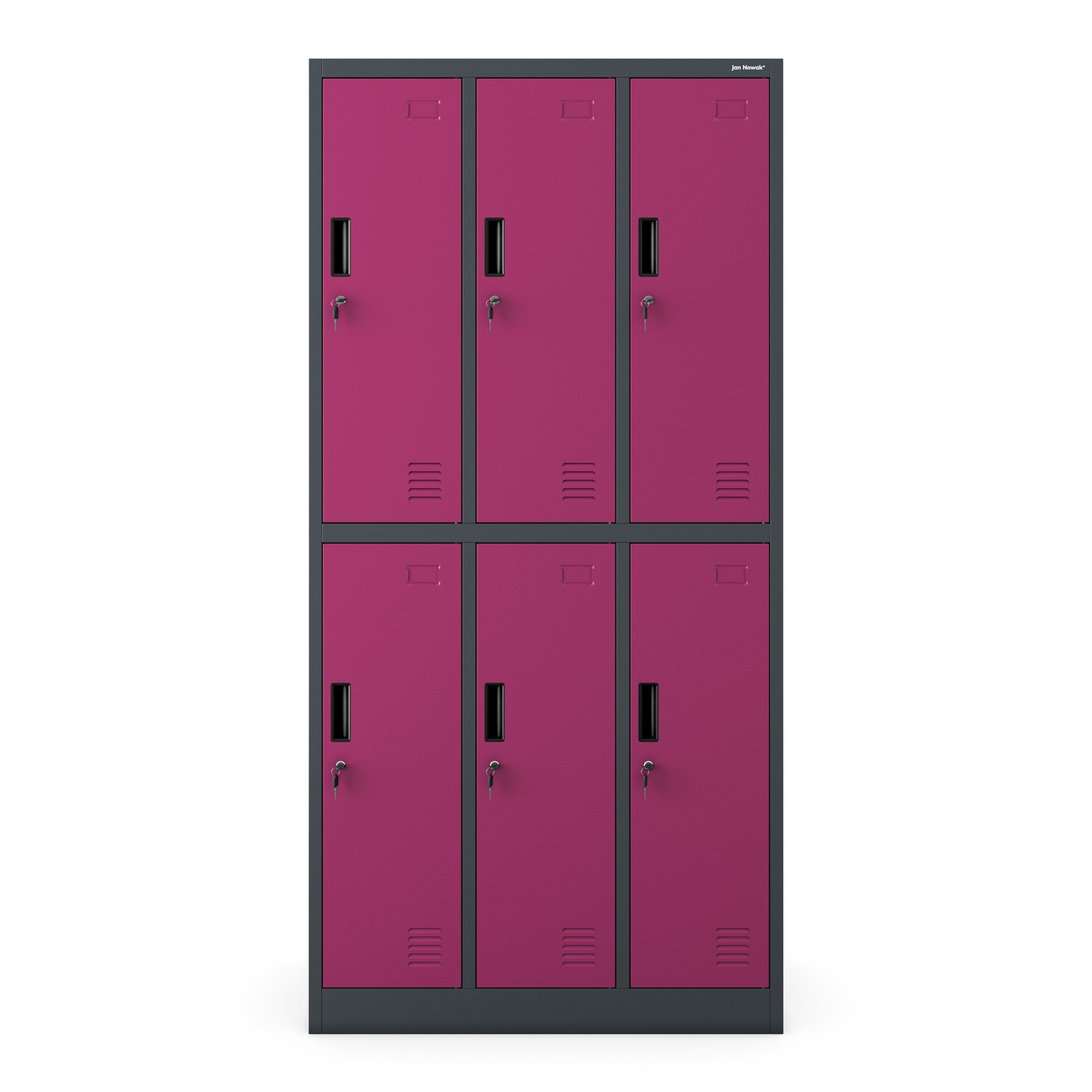 Sociální skříň JAN NOWAK, fuchsie, model IGOR - skříňka BHP s 6 dveřmi, do šatny, do dílny, do závodu IGOR – kovová sociální skříň Kovová sociální skříň IGOR byla navržena speciálně s ohledem na dílny nebo závody malých rozměrů. Vytvořen pro potřeby malých společenských místností, tento nábytek obsahuje až 6 uzamykatelných skříněk, přestože jeho šířka je pouhých 90 cm. Díky zámkům umožňuje uchovávání dokumentů v souladu s požadavky GDPR 2018. Poznejte všechna využití kovové skříně BHP IGOR: navržena s ohledem na hotely, posilovny, školy a ordinace, osvědčí se v malých šatnách výrobních závodů, dílen či stavebních firem. Skříňky jsou uzamykatelné, umožňují bezpečné uložení oděvů, nástrojů, osobních předmětů a dokumentů. Funkční sociální skříň IGOR – moderní a prostorná Skříňku IGOR jsme vybavili 6 prostornými skříňkami uzamykatelnými na klíč a k sadě jsme přidali univerzální klíč, který otevírá každou skříňku. Naše sociální skříň byla vyrobena z nejkvalitnější oceli o tloušťce 0,6 mm, je odolná vůči veškerým mechanickým poškozením a má mimořádně stabilní konstrukci. Díky tomu se IGOR osvědčí v každodenním provozu a splní veškerá očekávání. Časté používání výrazně usnadní pohodlné vizitkáře, navíc model IGOR má ventilační otvory, které umožňují správnou cirkulaci vzduchu. TRVANLIVÁ - sociální skříň IGOR má mimořádně stabilní konstrukci a je vyrobena z práškově lakovaného plechu o tloušťce až 0,6 cm! BEZPEČNÁ - každá skříňka je uzamčena silným, závorovým zámkem, takže neoprávněné osoby nemají přístup do vnitřku skříněk KOMPAKTNÍ - naše sociální skříň bez problémů pojme oblečení či osobní věci až šesti osob, přestože její šířka je pouhých 90 cm KOMFORTNÍ - v každé skříňce je namontována tyč a místo pro další ramínka VZDUŠNÁ - sociální skříň IGOR má ventilační otvory, které zajišťují cirkulaci vzduchu uvnitř skříněk Sociální skříň IGOR – technické údaje Rozměry: Hmotnost (včetně balení): 49 kg Barva: fuchsiová / antracit RAL 4006 / RAL 7016 Výška: 185 cm Šířka: 90 cm Hloubka: 45 cm Rozměry jednotlivé skříňky: Výška: 84,6 cm Šířka: 26,6 cm Hloubka: 45,0 cm Dále: Soulad s předpisy GDPR 2018 Záruka kvality! Atest PZH Nejvyšší kvalita za rozumnou cenu Stojí za to vědět: Doprava již od 125 Kč Snadná, samostatná montáž Přehledný návod v balení Kancelářský nábytek Značka – jeden z největších distributorů kovových skříní v celé Evropě.