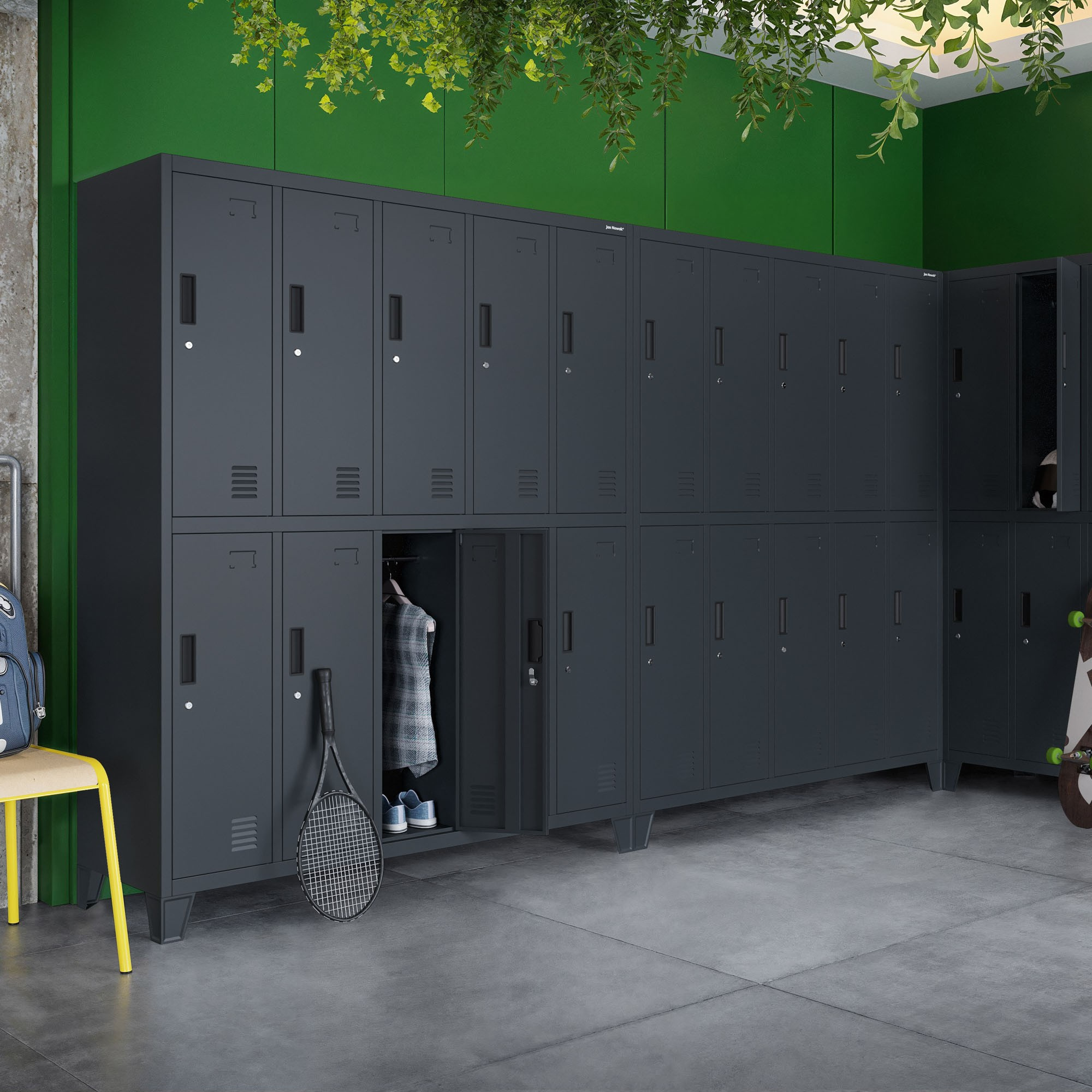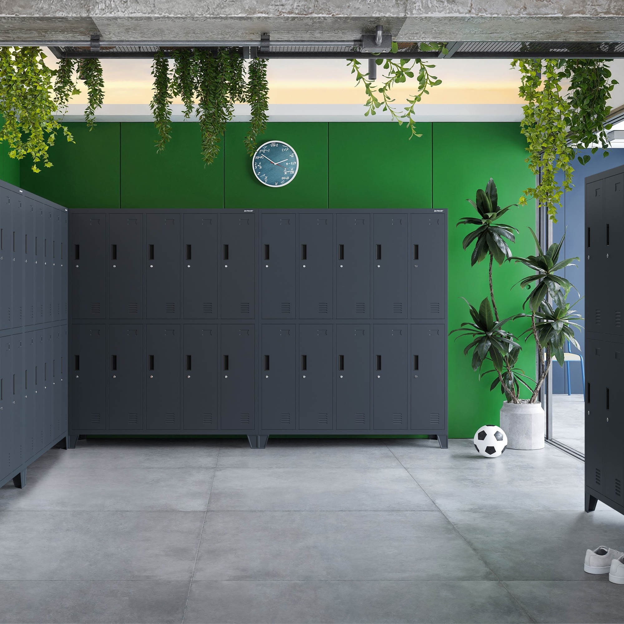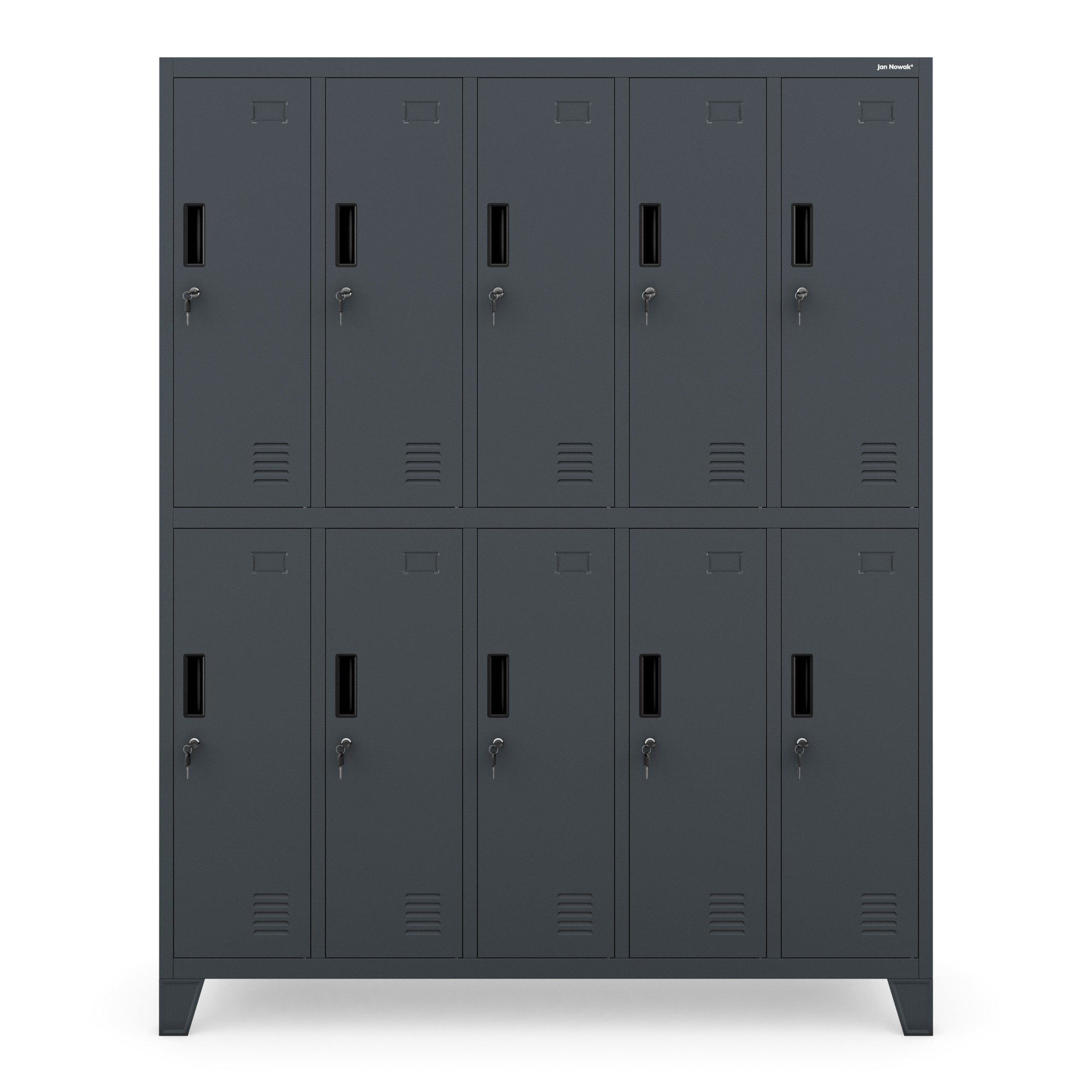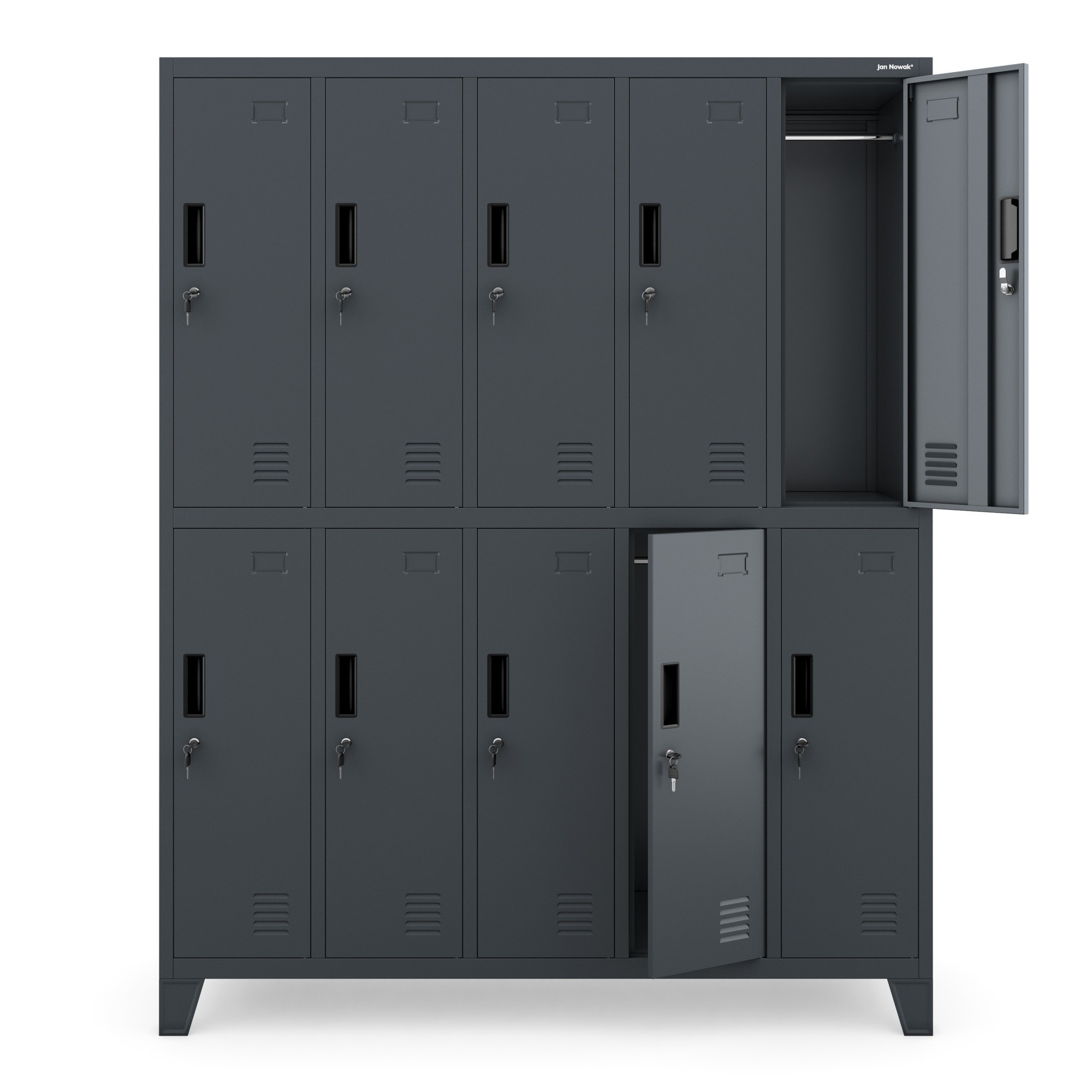 Kovová uzamykatelná šatní skříňka na oblečení s 10 boxy antracitová: BARTEK 1360 x 1720 x 450 mm