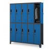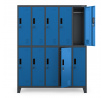 Kovová uzamykatelná šatní skříňka na oblečení s 10 boxy antracitovo-modrá: BARTEK 1360 x 1720 x 450 mm