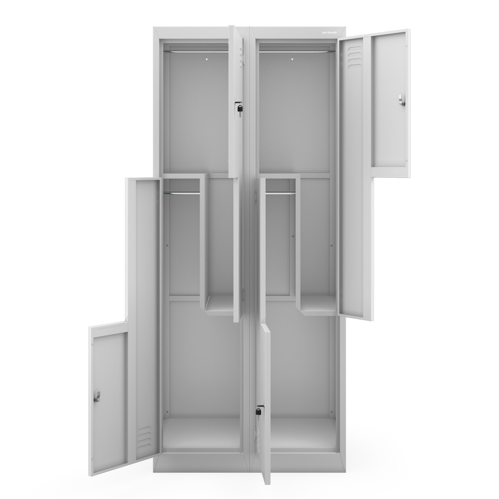 Kovová uzamykatelná šatní skříňka na oděvy čtyřkomorová JULIA, 800 x 1850 x 450 mm, šedá