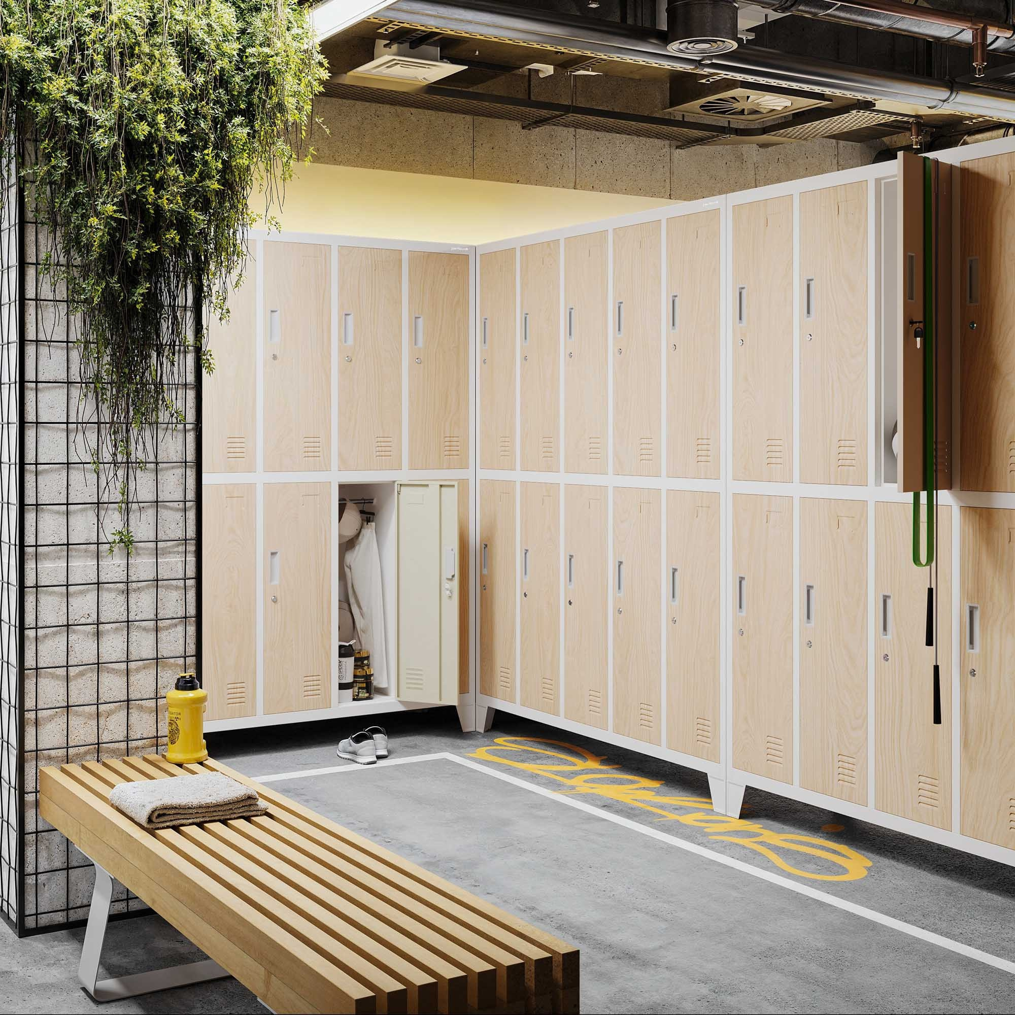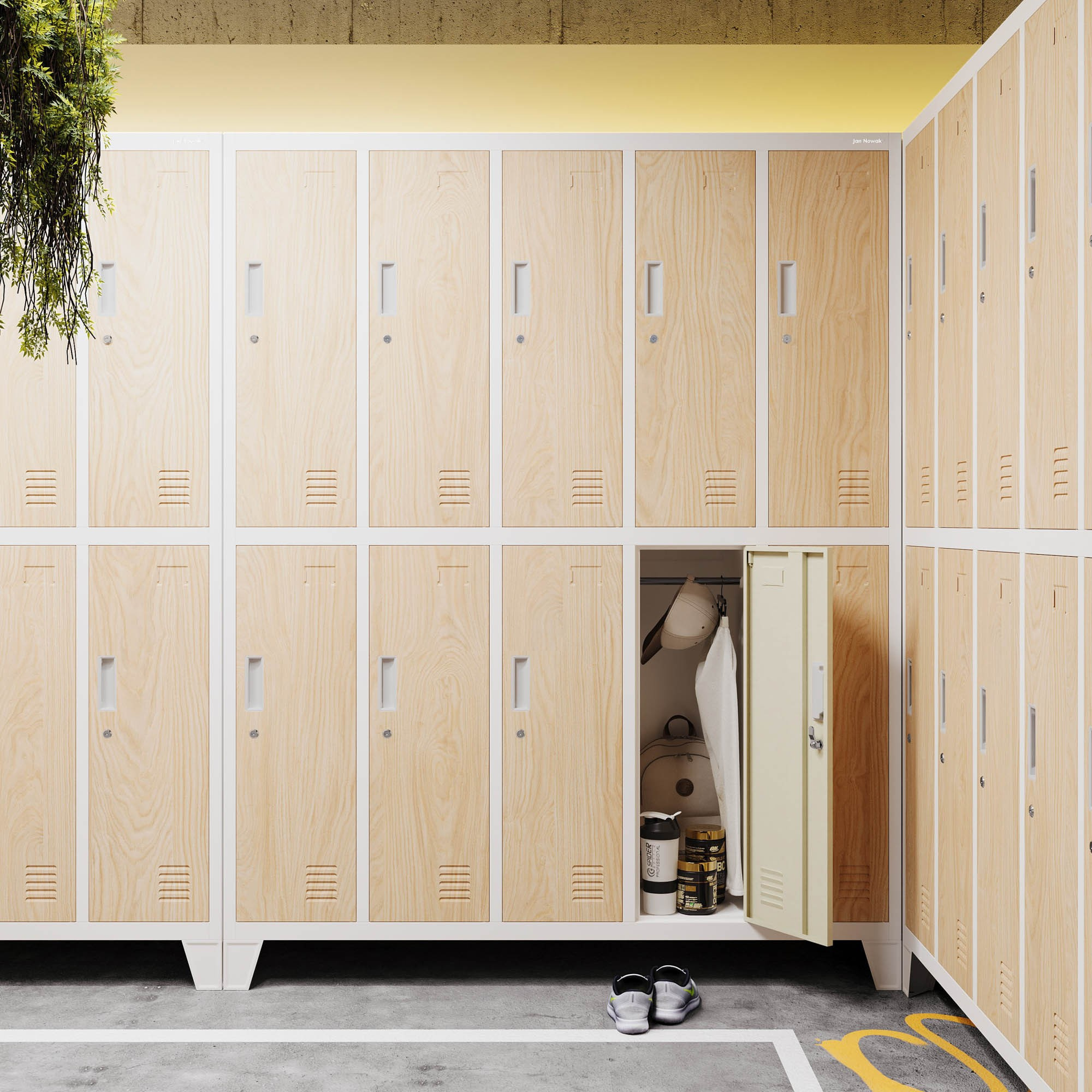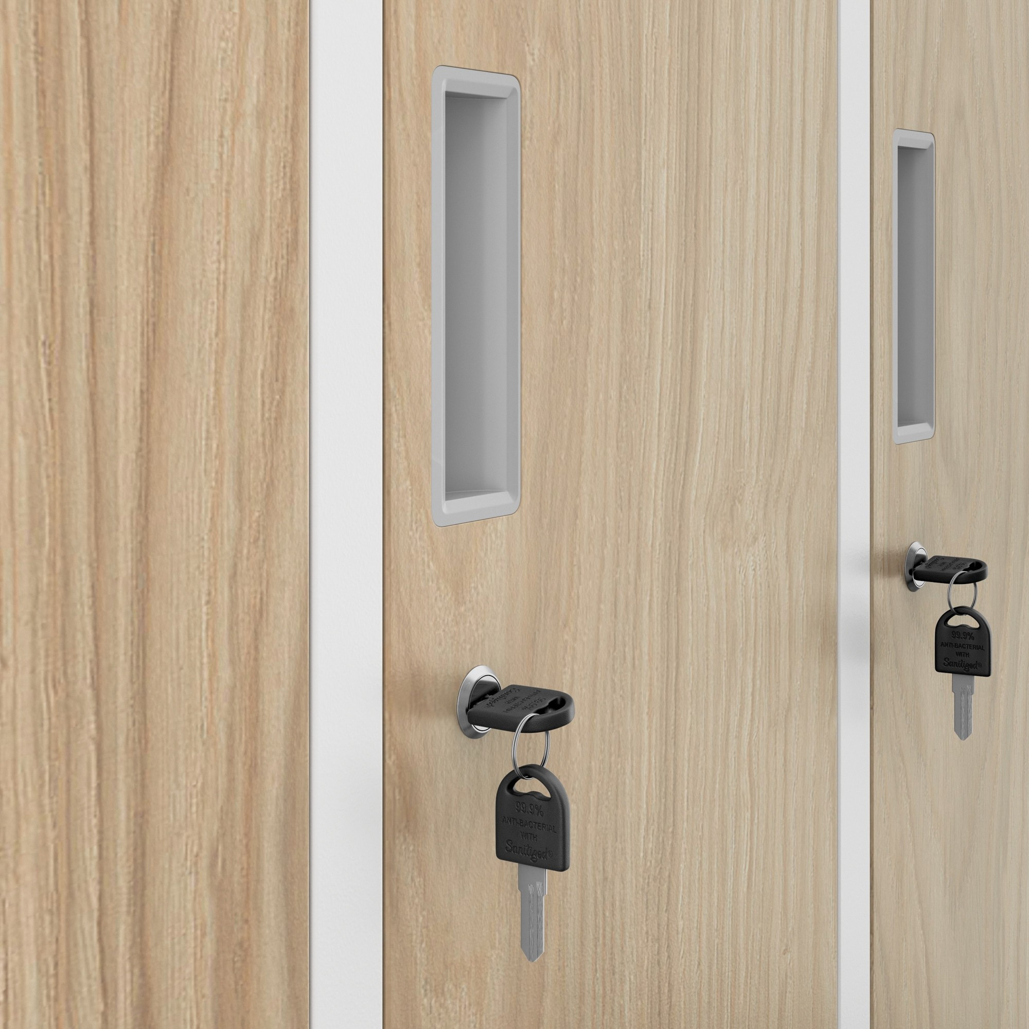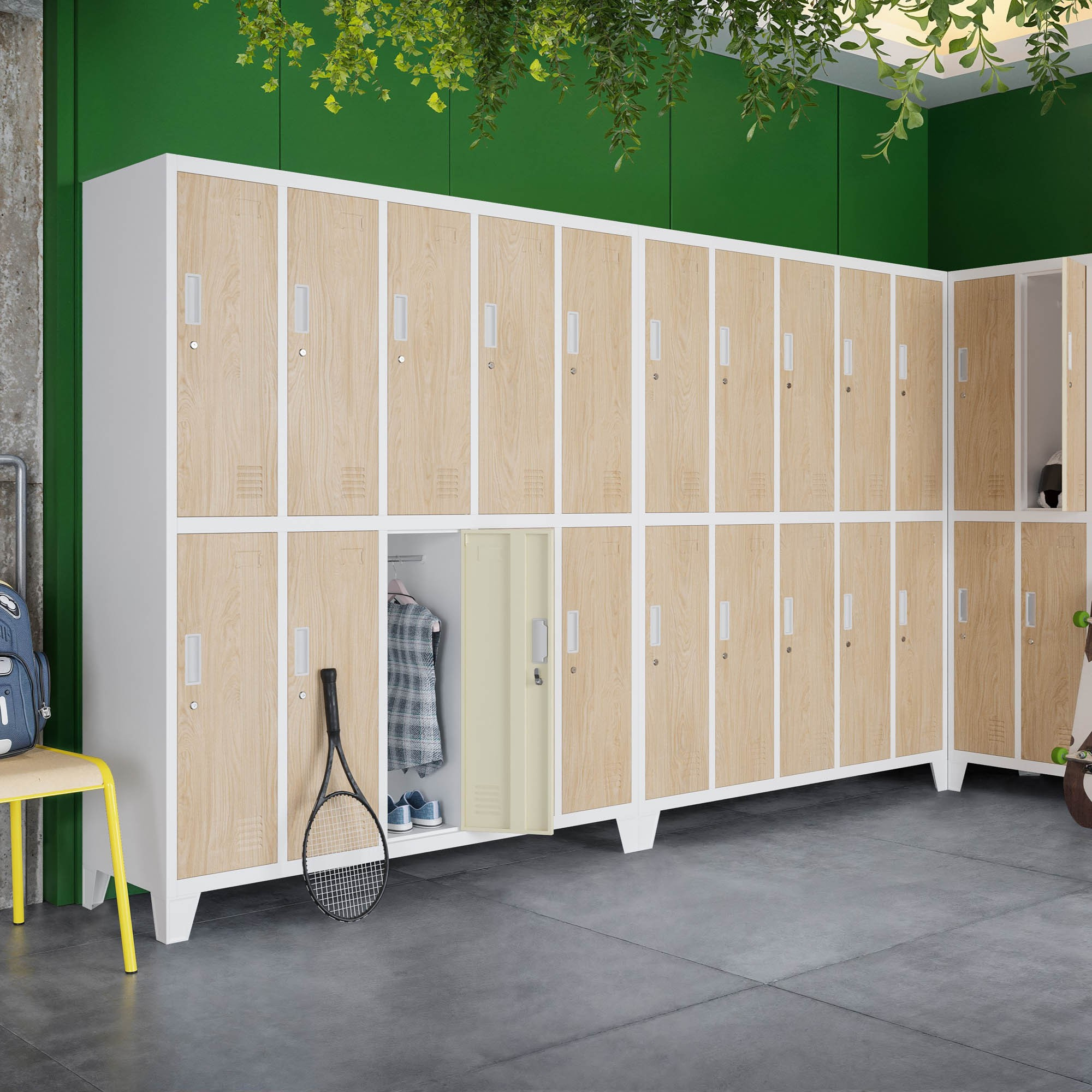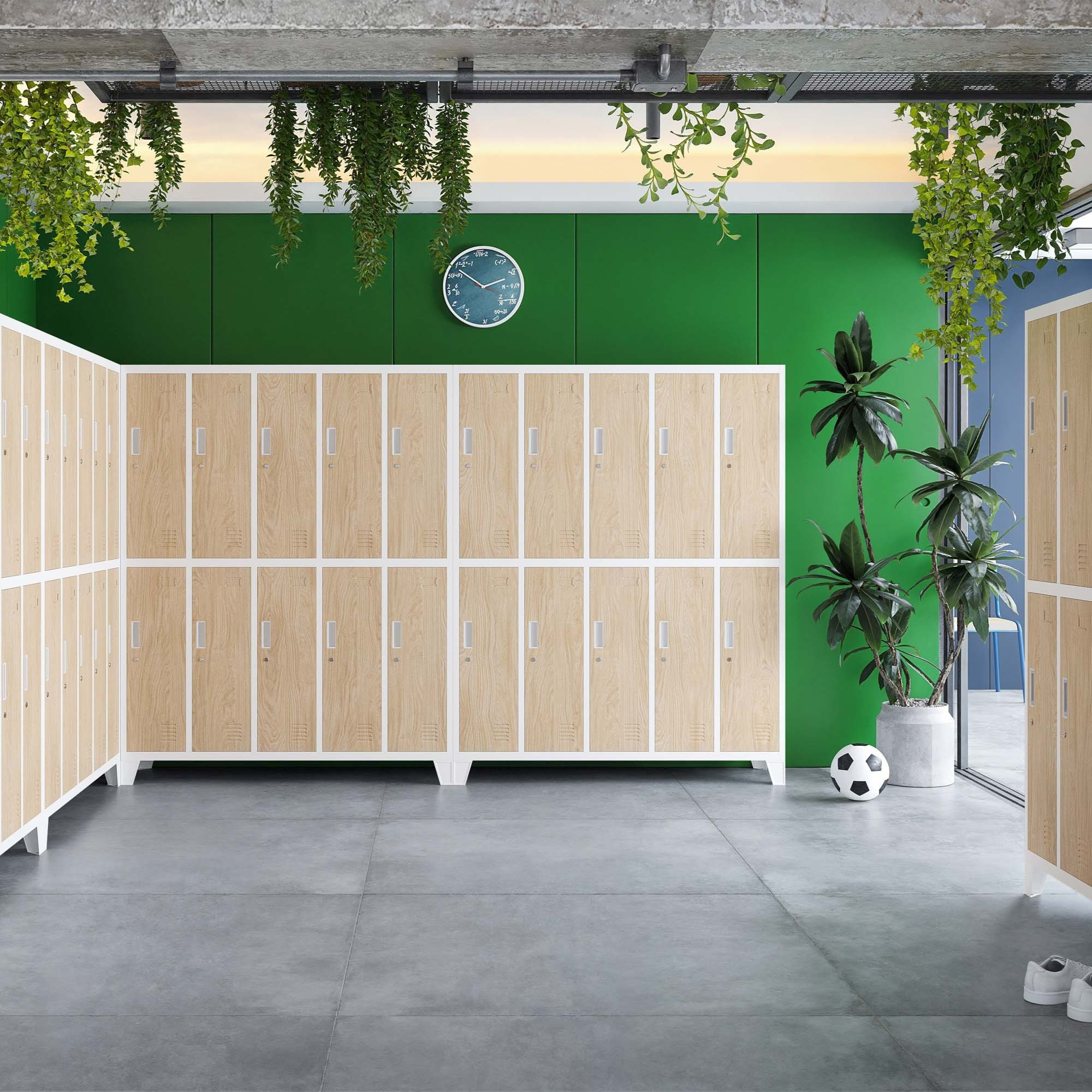 Plechová uzamykatelná šatní skříň s 10 boxy BARTEK, 1360 x 1720 x 450 mm, Eco Design: bílá/dub sonoma