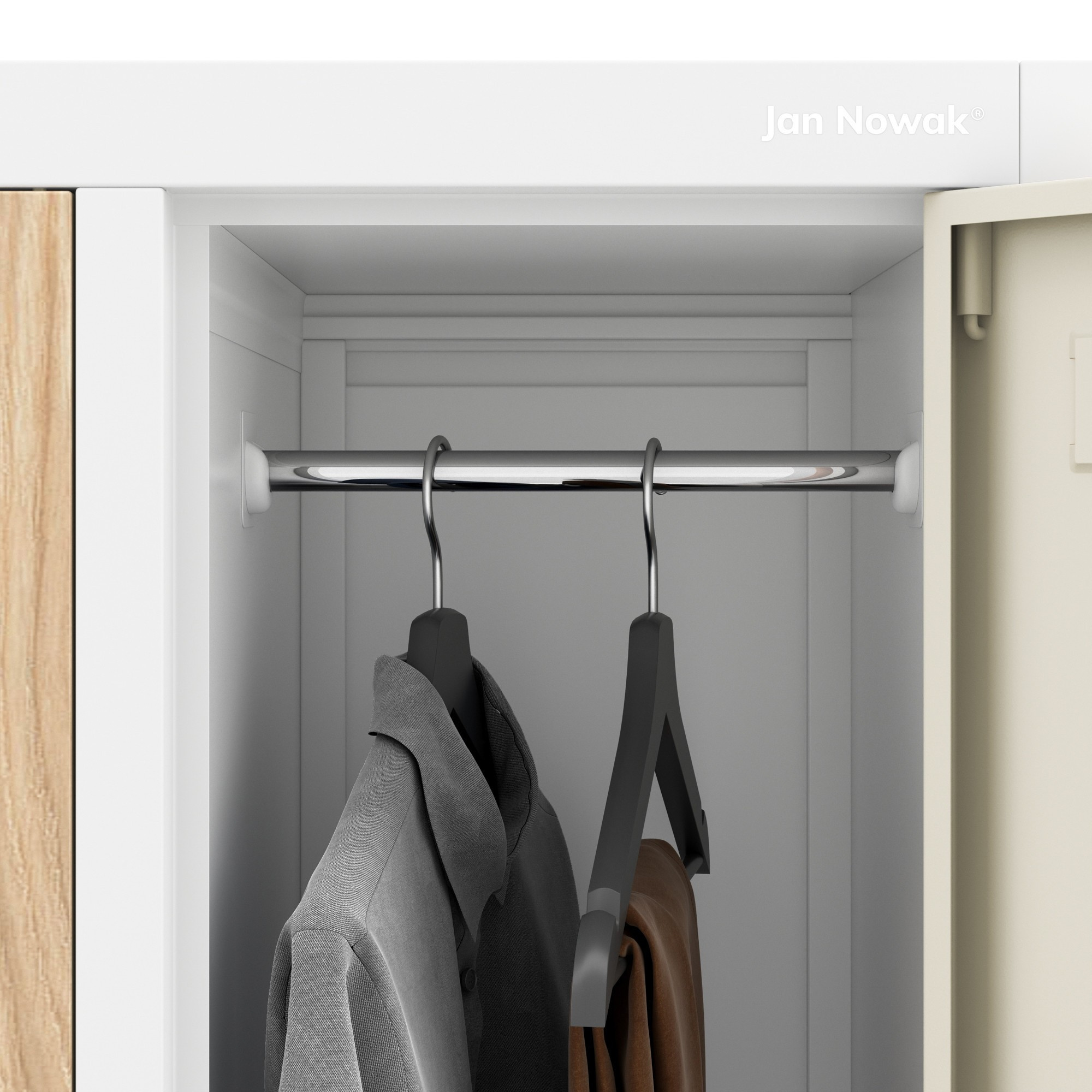 Kovová skříň Eco Design model BARTEK Skříň BHP / 10 schránek / ocel 0,6 mm BÍLÁ (RAL 9003) / DUB SONOMA Sociální skříň model BARTEK – schránková, kovová skříň BHP Spolehlivá konstrukce a velká kapacita jsou vlastnosti, díky kterým je BARTEK nenahraditelnou skříní BHP. Nyní se k řadě výhod připojuje také unikátní design, který dokonale oživí interiér – nejen v loftovém stylu, ale i ten více tradiční. Kombinace klasické bílé s tlumenou barvou dubu v odstínu sonoma dodá místnosti exkluzivní charakter. Dvířka skříněk BARTKA pokrývá speciální barva, vysoce odolná proti oděru, připomínající klasický dub sonoma. Dobře víme, jak důležitá je péče o životní prostředí – proto jsou naše skříně vyrobeny výhradně z kovu. Eco design je série pro ty, kteří hledají nábytek s poněkud odlišným charakterem, ale nechtějí se vzdát odolnosti, kterou se vyznačuje ocelový plech. Naše sociální skříň vybaví mnoho míst a v každém z nich se osvědčí dokonale. BARTEK je vynikající nábytek pro školy, školky, kosmetické salony, ordinace, lékařské ordinace, hotely, posilovny nebo sportovní kluby. Kovová sociální skříň BARTEK – loft v pevném, praktickém provedení 10 prostorných přihrádek a pouze 136 cm šířky činí BARTKA číslem jedna mezi nejpraktičtějšími řešeními pro sociální prostory, protože kompaktní konstrukce umožňuje efektivně využít šatnu. Naše BHP skříň je vyrobena z vysoce kvalitní práškově lakované oceli o tloušťce 0,6 mm, díky čemuž je mimořádně odolná vůči mechanickému poškození a skvěle se osvědčuje i při intenzivním používání.Skříňky BARTKA jsou uzamykatelné na klíč, což umožňuje ukládání cenných předmětů. Dodatečně zajištěný zámek umožňuje shromažďování dokumentů obsahujících osobní údaje v souladu s platnými pravidly GDPR. Na každé skrýši se nachází individuální vizitka. Co získáváte se značkou JAN NOWAK? Záruka kvality - Nejlepší materiály a žádné kompromisy ve zpracování. Certifikát PZH – skříň s přihrádkami BARTEK splňuje platné normy v oblasti bezpečnosti. Shoda s aktuálními předpisy GDPR – uchováte dokumenty obsahující osobní údaje. Sociální skříň BARTEK – technické údaje: Hmotnost (včetně balení): 66 kg Barva: bílá (RAL 9003) / dub sonoma Výška: 172 cm Šířka: 136 cm Hloubka: 45 cm Rozměry přihrádky: 4 sloupce (počítáno od levého okraje skříňky): Výška 77,6 cm Šířka 26,5 cm Hloubka 45,0 cm 1 sloupec: Výška 77,6 cm Šířka 29,0 cm Hloubka 45,0 cm Stojí za to vědět: Samostatná montáž Přehledný návod v balení Značka – jeden z největších distributorů kovových skříní v celé Evropě.