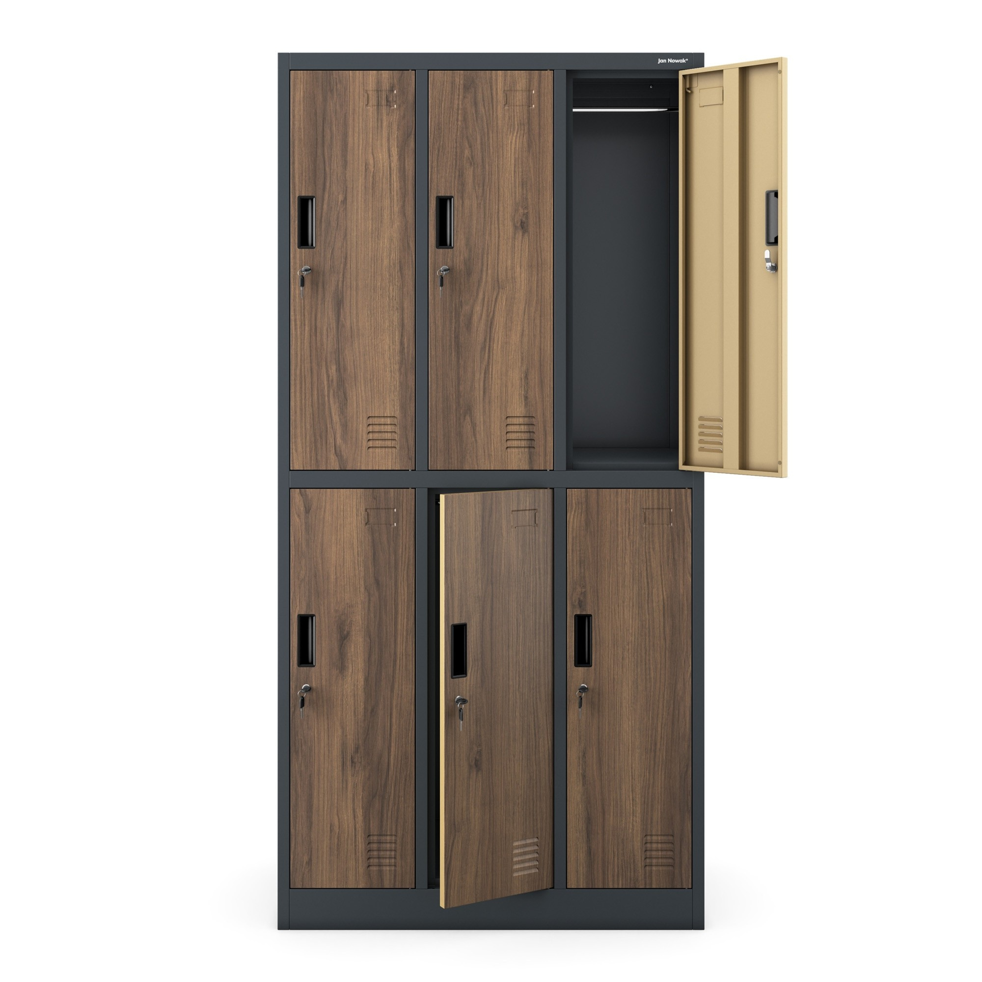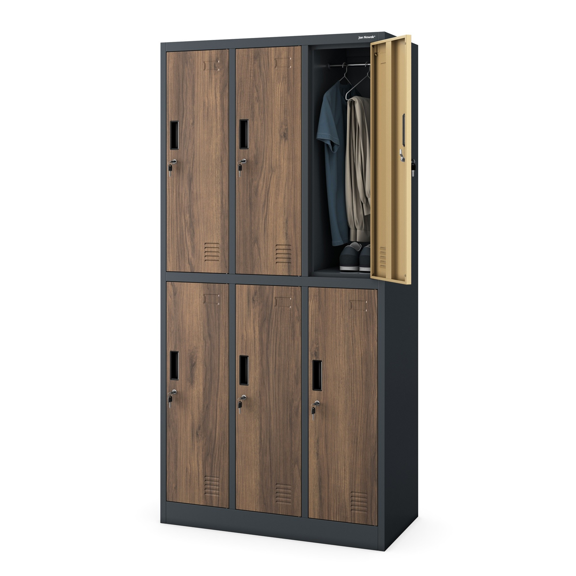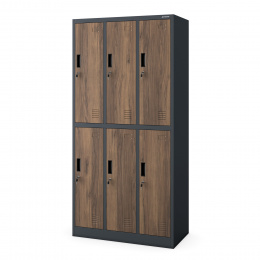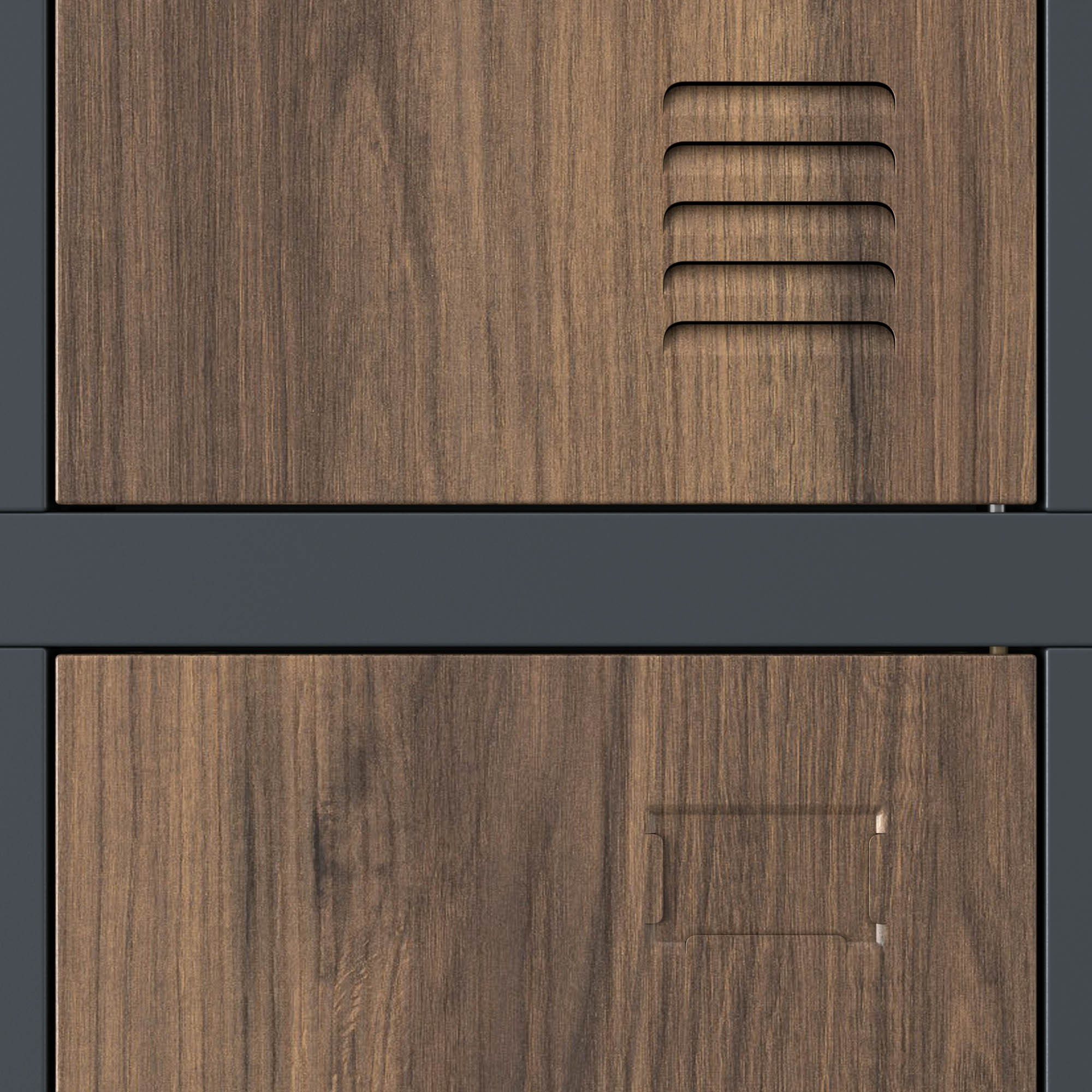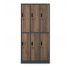 Plechová uzamykatelná šatní skříň s 6 boxy IGOR, 900 x 1850 x 450 mm, Eco Design: antracitová/ořech