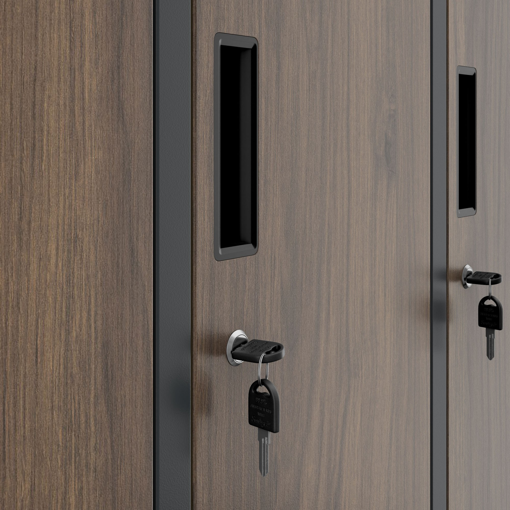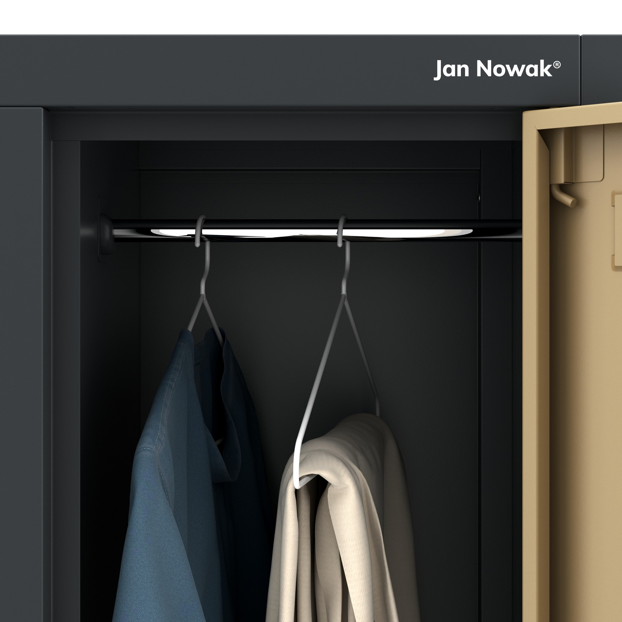 Kovová skříň Eco Design model IGOR Skříň BHP / 6 schránek / ocel 0,6 mm ANTRACITOVÁ (RAL 7016) / OŘECH Sociální skříň model IGOR – schránková, kovová, skříň BHP S IGOREM je ukládání oblečení, osobních věcí nebo dokonce dokumentů mimořádně pohodlné. Naše BHP skříň je zárukou, že vaši zaměstnanci, klienti nebo studenti získají pohodlí a nezbytnou bezpečnost. Pečlivě navržená konstrukce umožňuje ukládat věci až šesti osobám, avšak kompaktní velikost umožní vybavit i ten nejmenší interiér. Skříň BHP IGOR je nezbytností každého sociálního prostoru. Vyrábíme kovové skříně, protože péče o životní prostředí je jednou z našich priorit při tvorbě produktů. Nábytek z oceli se navíc vyznačuje výjimečnou odolností proti poškození, takže bude uchovávat dokumenty po dlouhá léta. Série Eco design vznikla pro ty, kteří nechtějí rezignovat na odolnost ocelového plechu, a přitom hledají nábytek s elegantnějším charakterem. Odolná proti oděru barva, která pokrývá dvířka IGORA, dokonale imituje ořechové dřevo. Tento nábytek oživí každý společenský prostor, šatnu nebo chodbu. Kompaktní sociální skříň IGOR – ideální pro malou šatnu Naše sociální skříň zajišťuje bezpečnost a pohodlí při ukládání. Jeho korpus tvoří pevný a odolný ocelový plech o tloušťce 0,6 mm, který zaručuje Igorovi odolnost proti mechanickému poškození a uloženému obsahu plnou bezpečnost. Navíc šatní skříň BHP Igor má až 6 prostorných skříněk – každou chrání zamykatelný zámek.Skříňka sociální IGOR – technické údaje Barva: antracitová (RAL 7016) / ořech Výška: 185 cm Šířka: 90 cm Hloubka: 45 cm Hmotnost (včetně balení): 49 kg Rozměry přihrádky: Výška: 84,6 cm Šířka: 26,6 cm Hloubka: 45,0 cm Značka je zárukou spokojenosti! Certifikát PZH - naše sociální skříň splňuje nezbytné bezpečnostní normy Možnost ukládání dokumentů v souladu s požadavky GDPR. Záruka kvality! Značka – jeden z největších distributorů kovových skříní v celé Evropě.