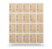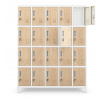 Skříň ROBERT nabízí 20 samostatných přihrádek, které poskytují dostatek prostoru pro uložení oblečení, obuvi, tašek, batohů a osobních věcí. Každá přihrádka má rozměry 36 x 24 x 45 cm, což zaručuje pohodlné uložení i větších předmětů.