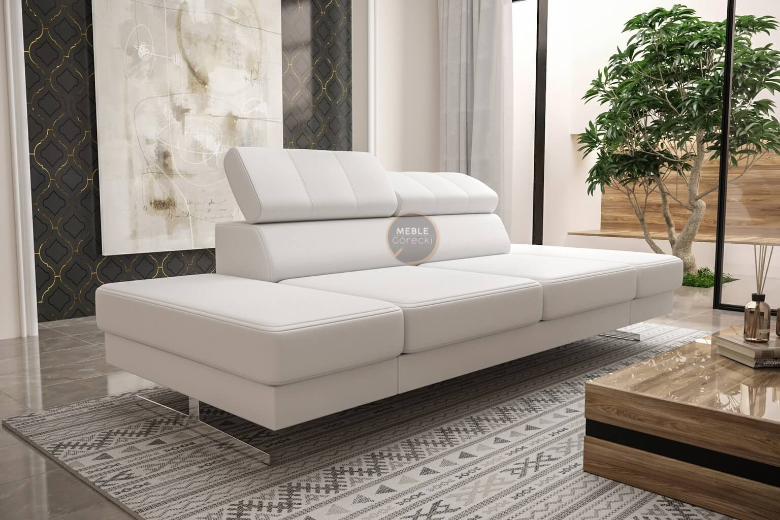 Sofa EMPORIO II 250 cm přírodní kůže - bílá kůže