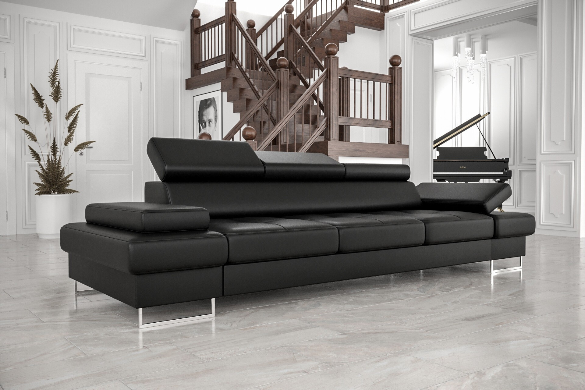 Pohovka GALAXY III je propracovaná do posledního detailu. Kvalitní švy, precizní zpracování a použití prvotřídních materiálů zaručují dlouhou životnost a odolnost. Nastavitelné opěrky hlavy vám umožní přizpůsobit si pohovku přesně podle vašich potřeb a preferencí.