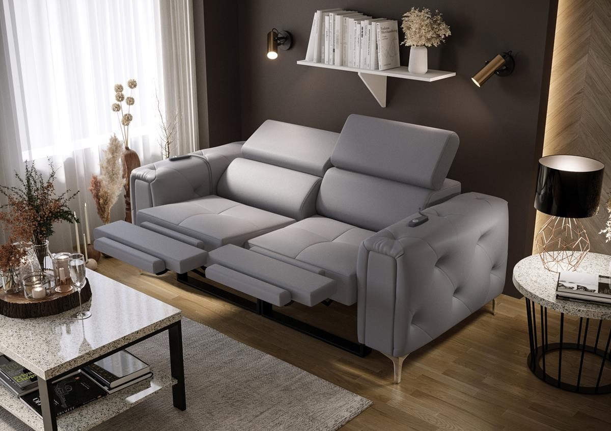 Sofa ORION II , relax 190 cm přírodní kůže - Šedá kůže