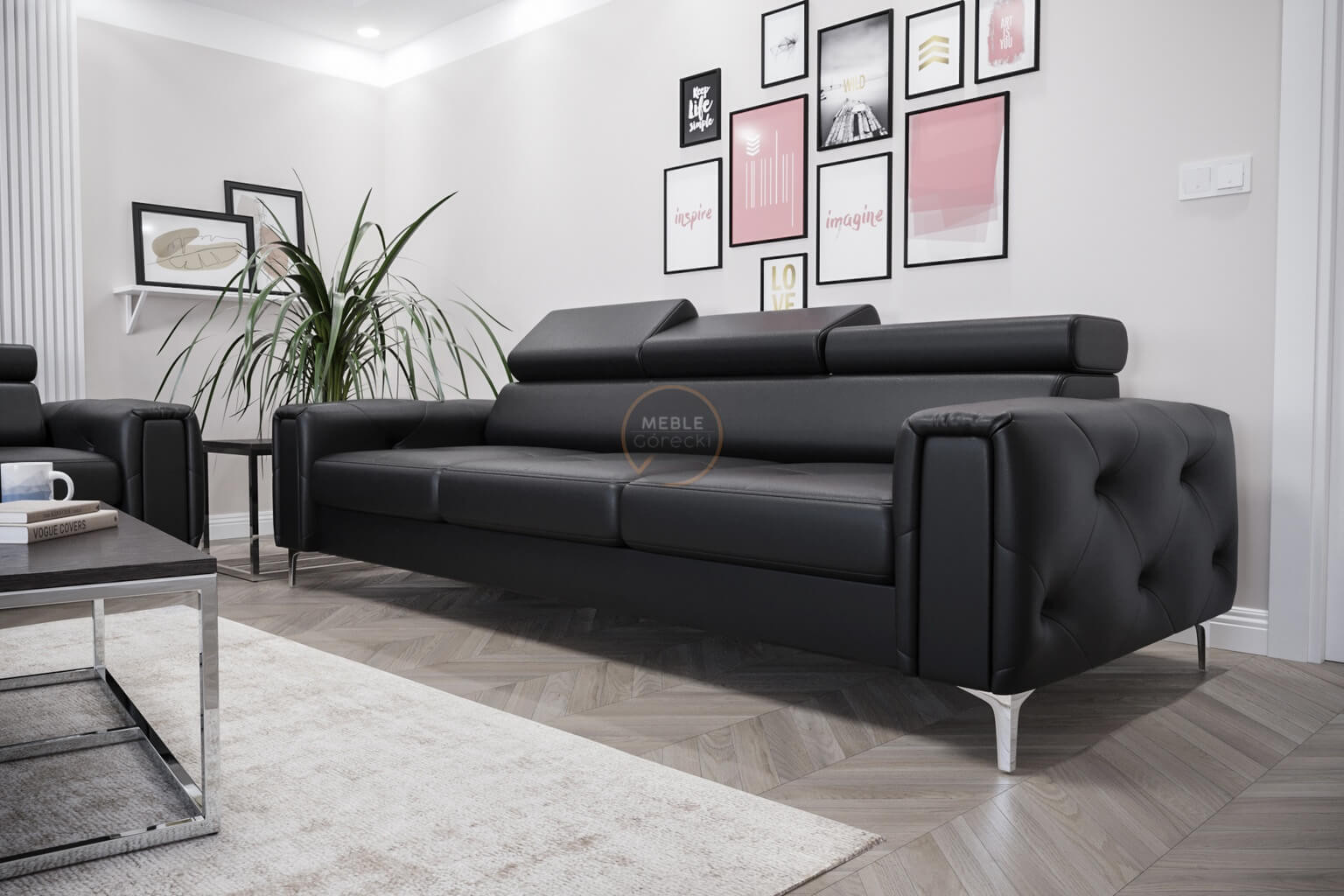 Kolekce čalouněného nábytku Orion je něco, co nikde jinde nenajdete! Charakteristickým prvkem jsou krásně zdobené, prošívané boky ve stylu glamour. Kromě estetických prvků stojí za to věnovat pozornost dokončení v podobě nastavitelných opěrek hlavy, které usnadní přizpůsobení výšky opěradla tak, aby byla pro vás ideální. Vysoké 13 cm kovové nohy podtrhují celek a dodávají konstrukci lehkost.