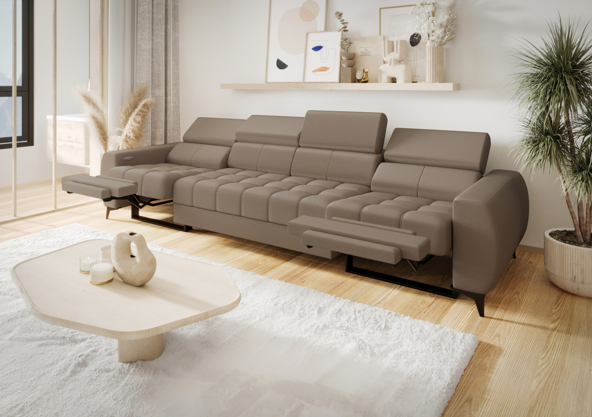 Sofa PORTO IV , relax 331 cm přírodní kůže - Kůže šedobéžová