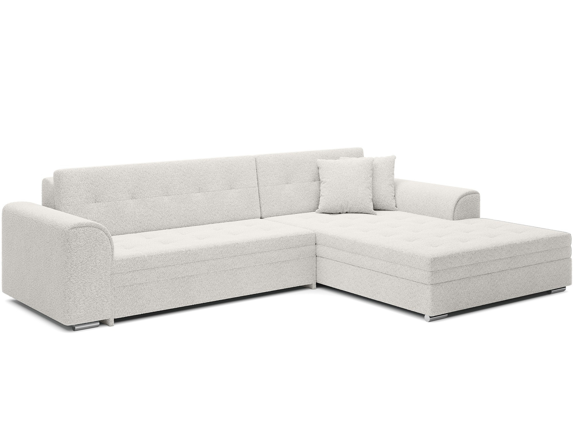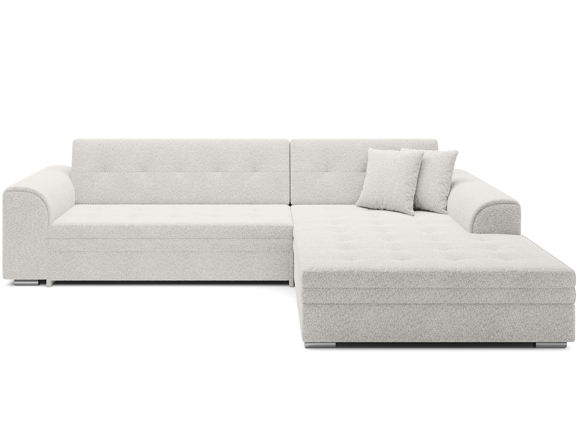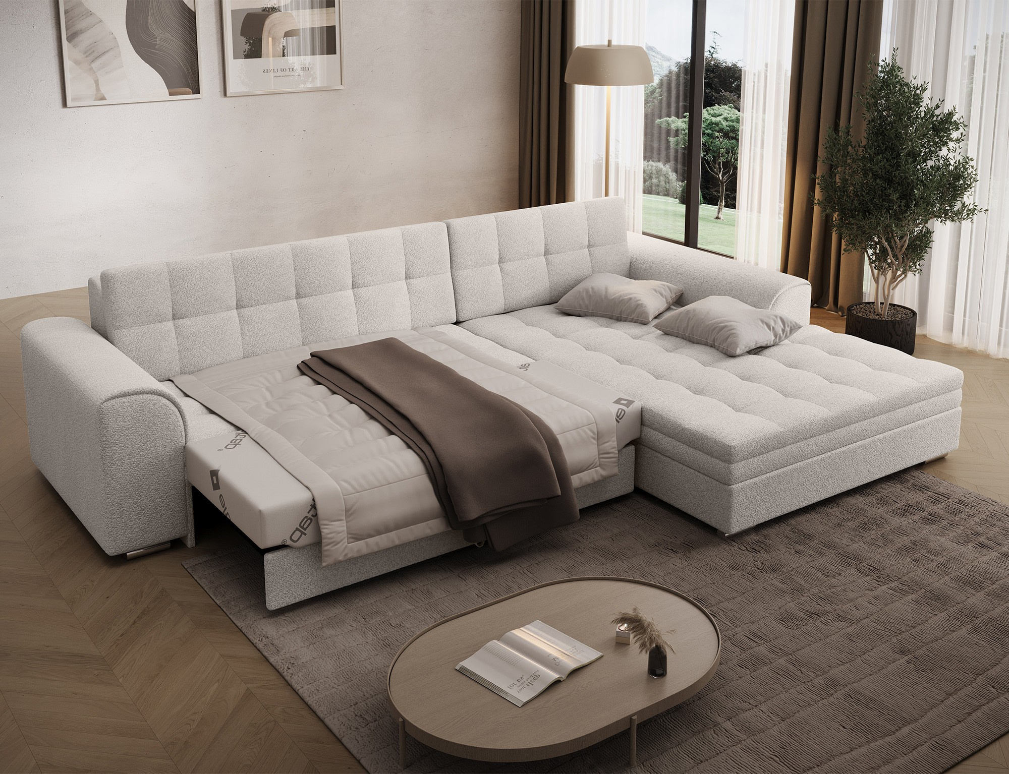 Sorento je stylová, multifunkční rohová pohovka se stabilní konstrukcí ve tvaru L, která vám bude sloužit jako kus nábytku po mnoho let. Pohovka o rozměrech 295 x 195 x 80 cm funguje dobře nejen jako místo pro denní relaxaci, ale také jako ústřední dekorace obývacího pokoje. Díky mechanismu typu delfín je rohová pohovka Sorento vhodná i pro noční odpočinek. Spací plocha o rozměrech 210 x 126 cm zajišťuje dlouhý spánek a plnou relaxaci. Maximální pohodlí zajišťuje kombinace vlnité pružiny a pěny T30, ze které je sedák vyroben. Při výběru rohové pohovky Sorento stojí za to si všimnout jejího neobvyklého stylu, stejně jako: tvarovaného opěradla, zaoblených opěrek a stylového prošívání, které dodávají charakter. Sorento je styl, pohodlí a třída sama o sobě. Určitě stojí za to mít takový kus nábytku ve svém bytě. Sorento je styl, pohodlí a třída sama o sobě. Určitě stojí za to mít takový kus nábytku ve svém bytě.