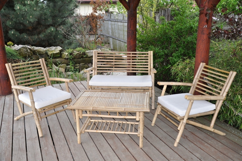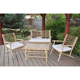 Sedací souprava Haiphong se skládá ze 2 bambusových křesel s polstry, pohovky včetně polstrování a bambusového stolu obdélníkového tvaru. | Pro výrobu tohoto bambusového nábytku je použit druh bambusu s minimální vnitřní dutinou, který roste v jižní oblasti Vietnamu. Díky tomu je bambusový nábytek velice pevný a nepraská. Velikost bambusového křesla je 60x68x77 cm, Nosnost křesla je 150 kg. Velikost bambusové pohovky je 110x68x77 cm, nosnost pohovky je 220 kg. Velikost stolu je 90x60x48 cm. Soupravu dodáváme v rozloženém stavu pro snadnou přepravu. Kompletace je jednoduchá a zabere jen pár minut. Bambusouvou sedací soupravu dodáváme včetně polstrů se snímatelnými povlaky.