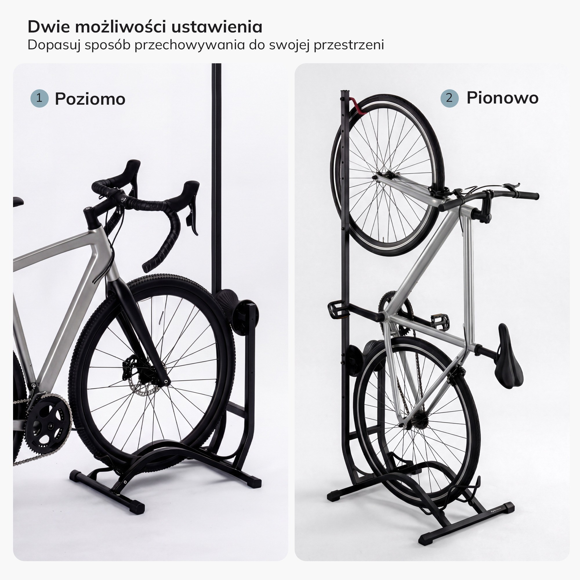 Díky možnosti vertikálního i horizontálního uložení kola si můžete vybrat, jaký způsob vám nejvíce vyhovuje. Vertikální uložení je ideální pro maximální úsporu místa, zatímco horizontální uložení umožňuje rychlý a snadný přístup ke kolu.