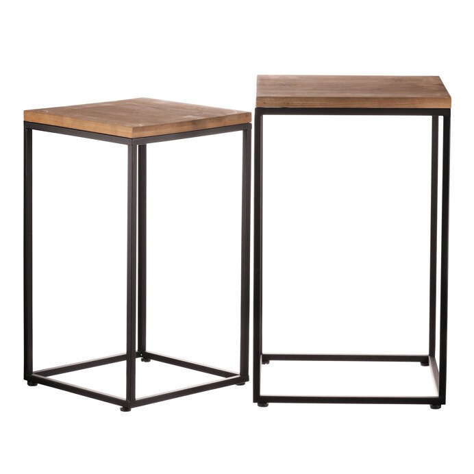 Kovový stojan s černými rámy a dřevěnou deskou v přírodní barvě bude skvělým základem pro vystavení vašich oblíbených květin. Jedná se o sadu 2 odlišně velkých kusů. Dokonale tak využijete váš prostor a nádherně vynikne krása rostlin na vyvýšeném místě.
