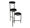 Bytový doplněk v podobě kovového stojanu v černé barvě bude skvělým pomocníkem pro prostorové umístění květin. Skládá se ze tří nosných ploch v různých výškách. Svým provedením je uzpůsoben pro umístění v rohu místnosti. Můžete tak krásně využít této mnohdy problematické plochy a terasovitě nechat vyniknout krásu rostlin na něm umístěných.