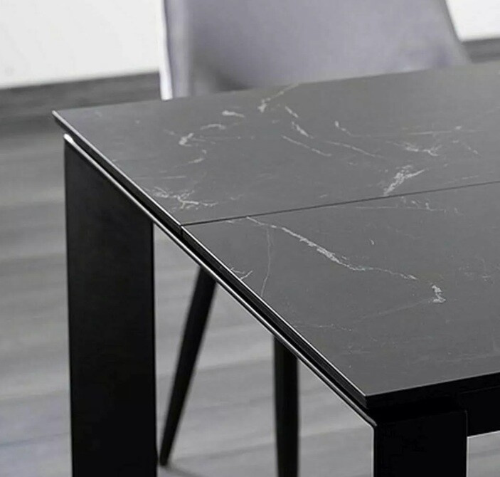 Jídelní stůl METROPOL CERAMIC, efekt bílého mramoru/černý mat