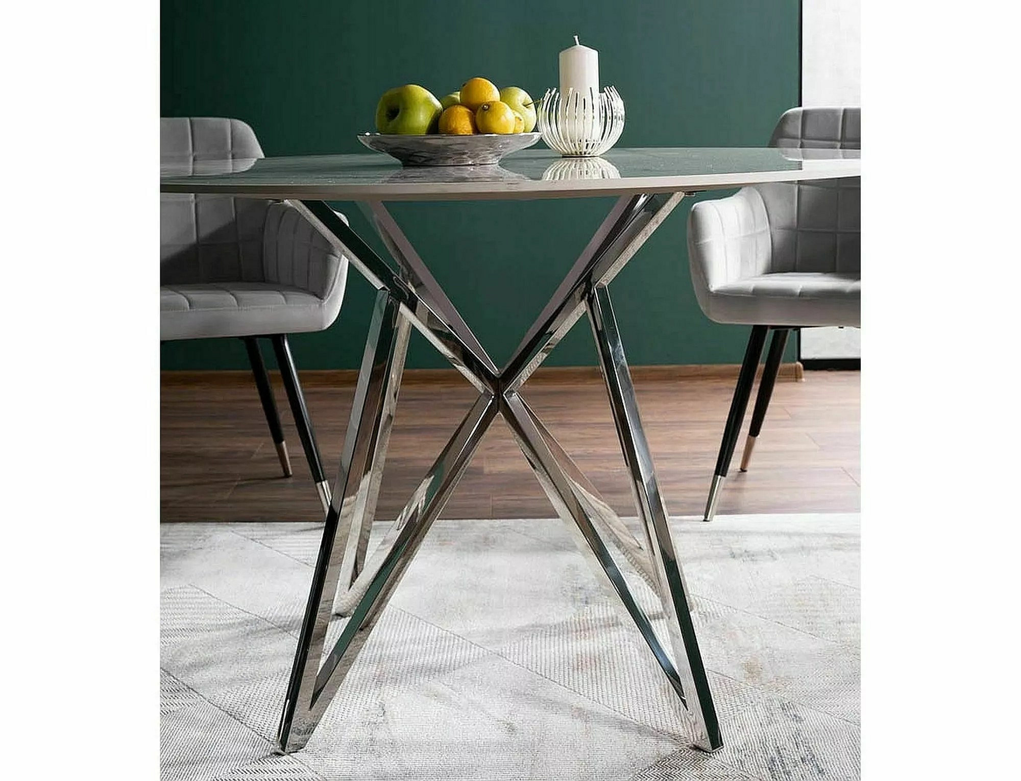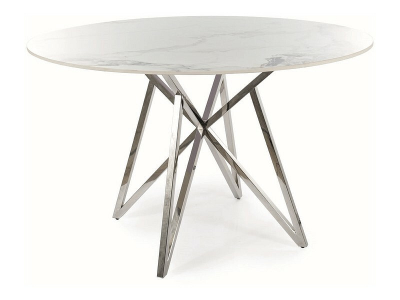 Jídelní stůl MURANO 120 cm, efekt bílého mramoru/Chrom