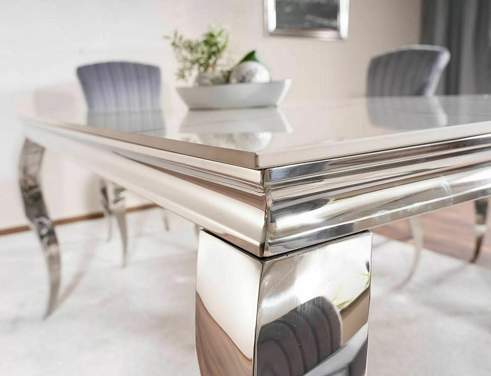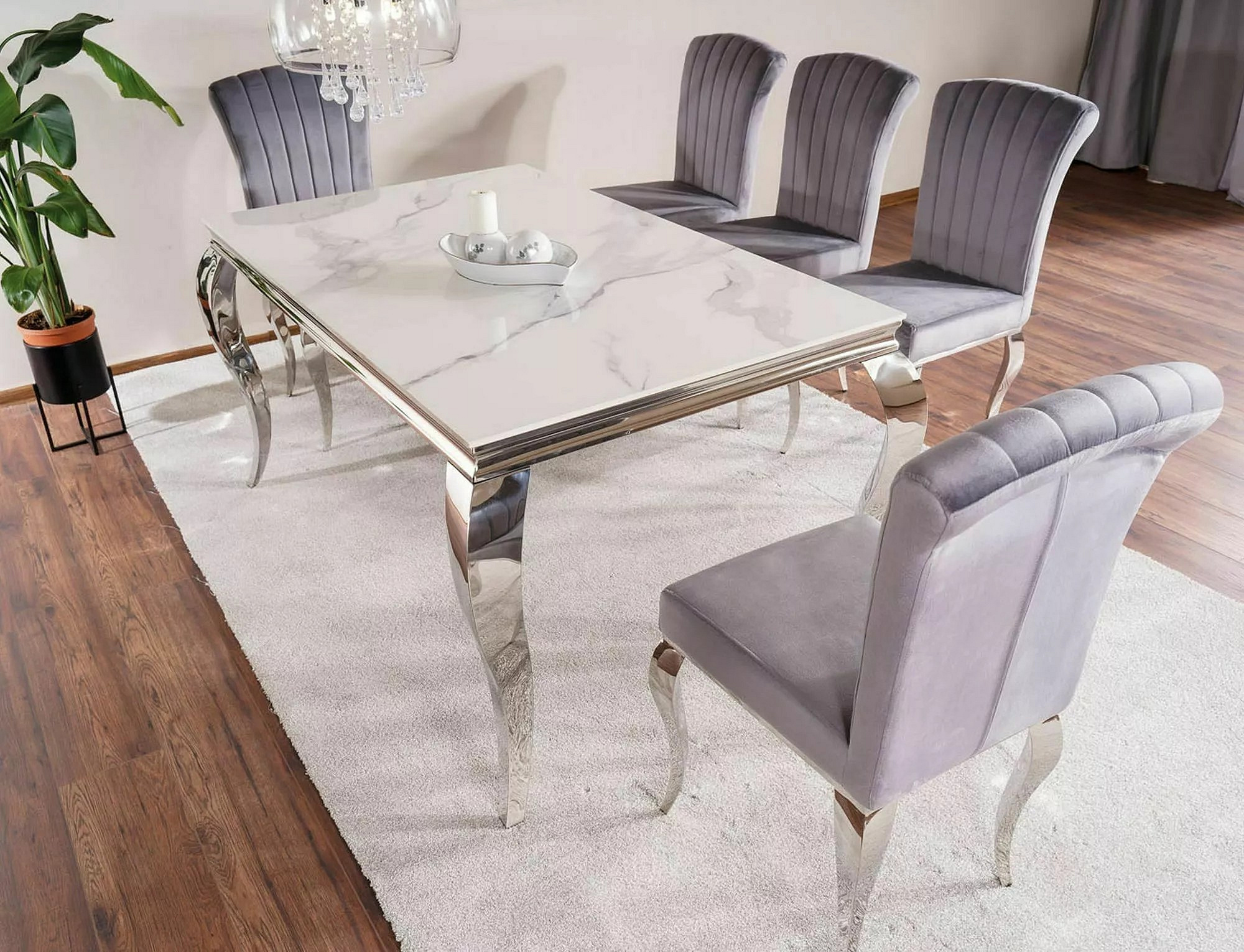 Jídelní stůl PRINCE CERAMIC, Bílá Calacatta/Chrom