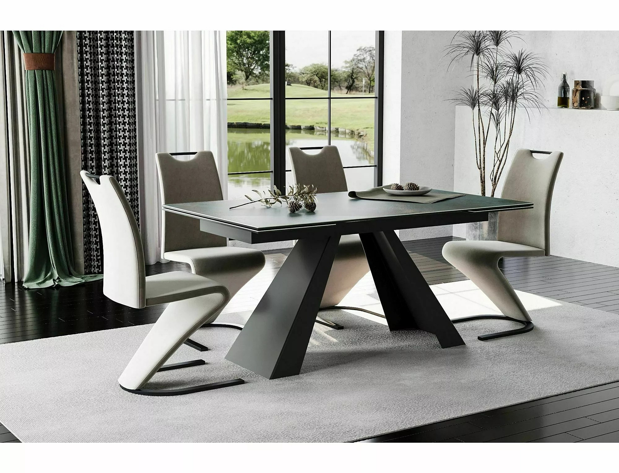 Jídelní stůl SALVADORE CERAMIC, Ossido Verde/Tyrkys/Černý mat