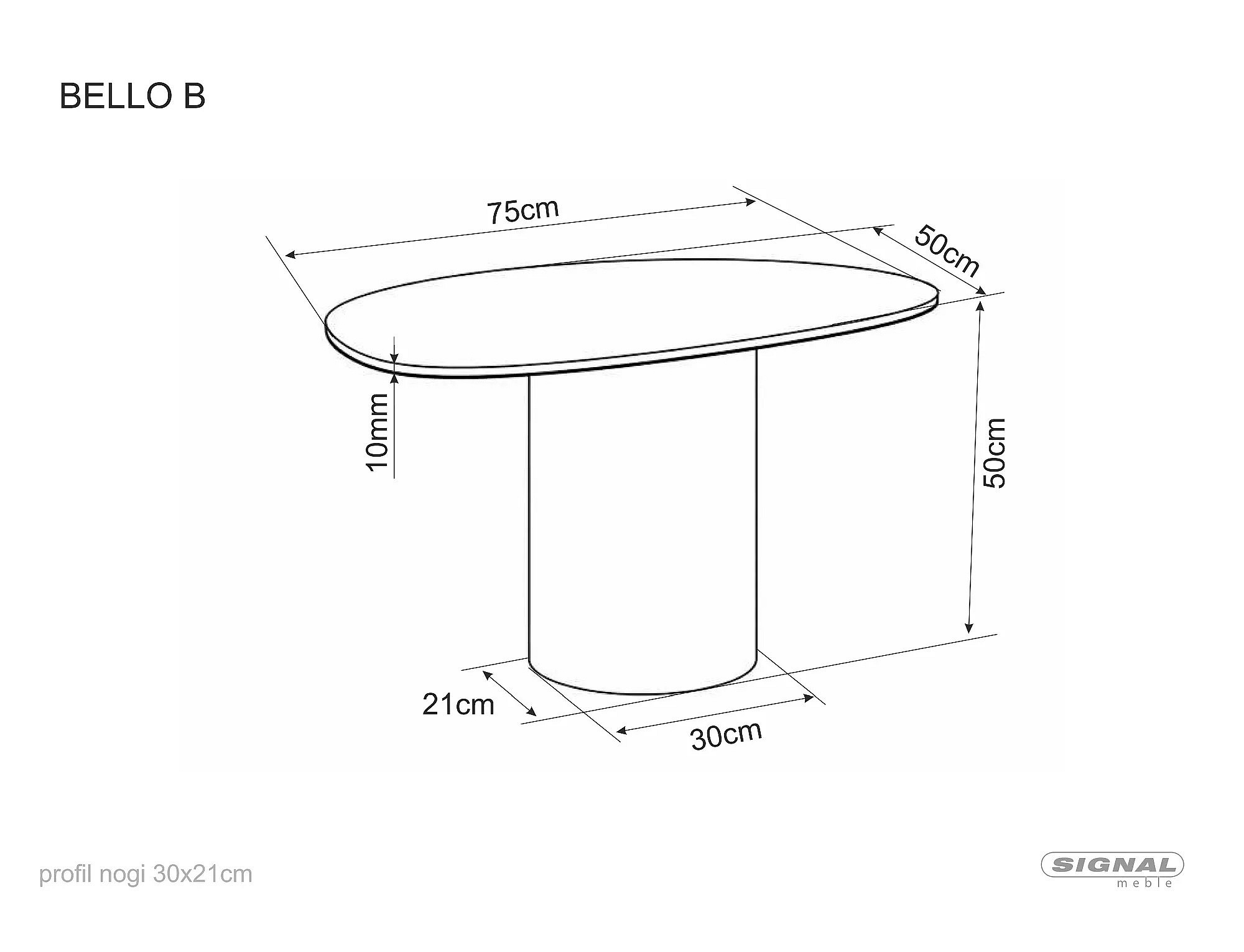 STOLEK BELLO B KERAMICKÝ BÍLÝ NATURE CLAUD / MĚDĚNÝ 75X50