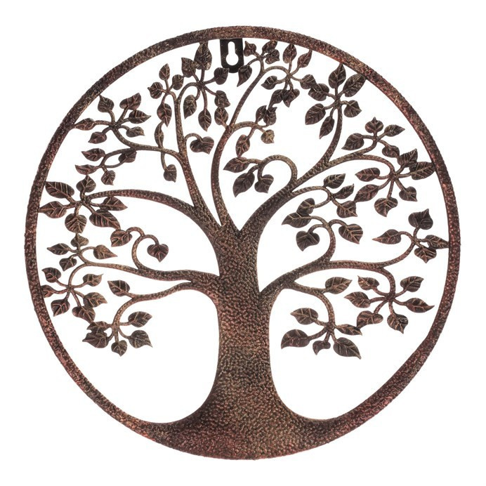 Strom kovový - dekorace na zeď, barva měděná-antik