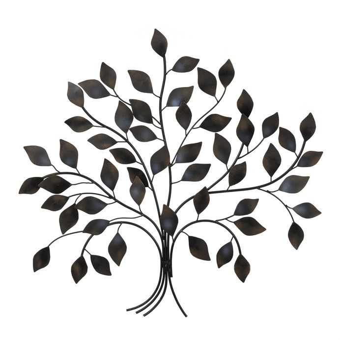 Strom kovový - nástěnná dekorace, špičaté lístky, hnědý