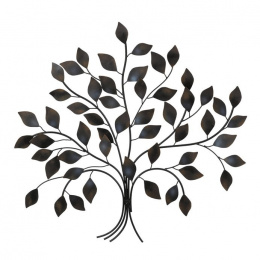 Nástěnná dekorace ve tvaru stromu je vyrobena z kovu v hnědém odstínu, který dodává přírodní a teplý vzhled. Jemně tvarované špičaté lístky jsou rozmístěny na tenkých větvích, které vytvářejí vzdušný a elegantní design. Dekorace je vhodná pro zavěšení na zeď v obývacím pokoji, chodbě nebo kanceláři a přináší do prostoru zajímavý vizuální prvek s nádechem přírody. Povrch kovu je upraven tak, aby materiál snadno udržoval svůj vzhled po dlouhou dobu. Rozměry a tvar umožňují snadné začlenění do různých stylů interiéru.