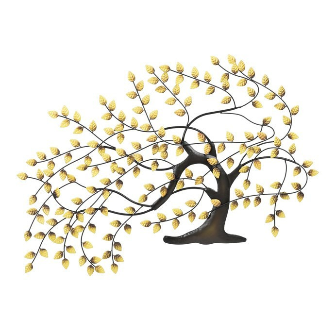 Nástěnná dekorace ve tvaru stromu je vyrobena z kovu s povrchovou úpravou v zlaté barvě, která dodává prostoru jemný a teplý lesk. Jemné větve s špičatými lístky vytvářejí vzdušný a dynamický vzhled, který oživí jakýkoliv interiér. Dekorace je vhodná pro zavěšení v obývacím pokoji, chodbě nebo kanceláři, kde přinese zajímavý vizuální prvek. Kovové tělo zajišťuje stabilitu a dlouhou životnost, zatímco zlatý odstín podtrhuje stylový charakter doplňku.