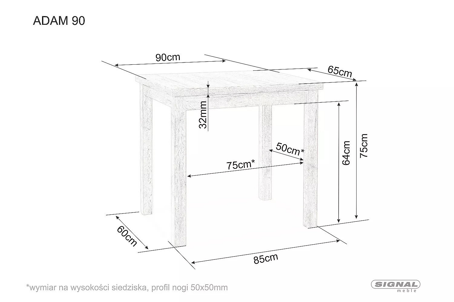 Jídelní stůl ADAM, dub artisan/černý, 90x65 cm