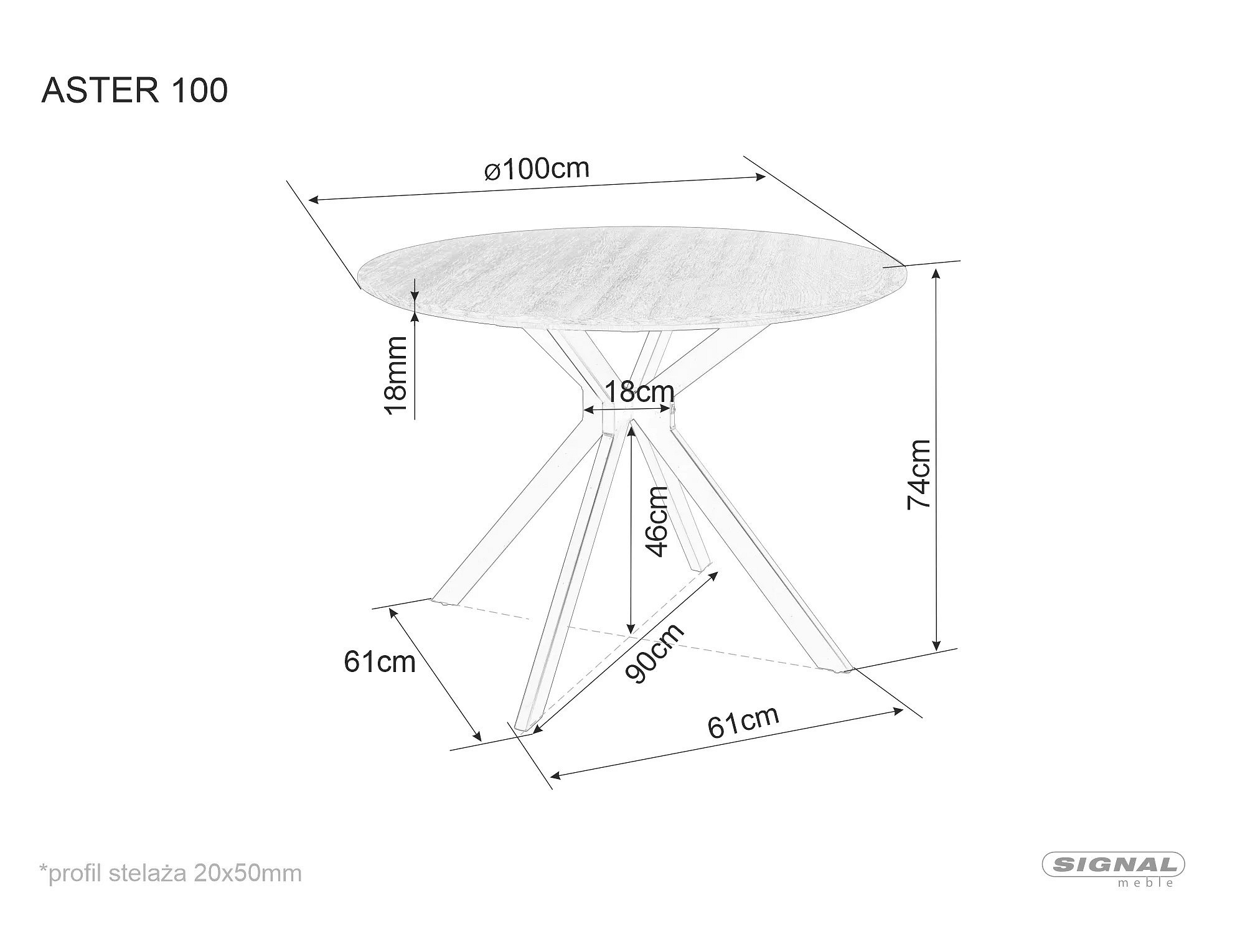Jídelní stůl ASTER 100 cm, Dub/Černý mat