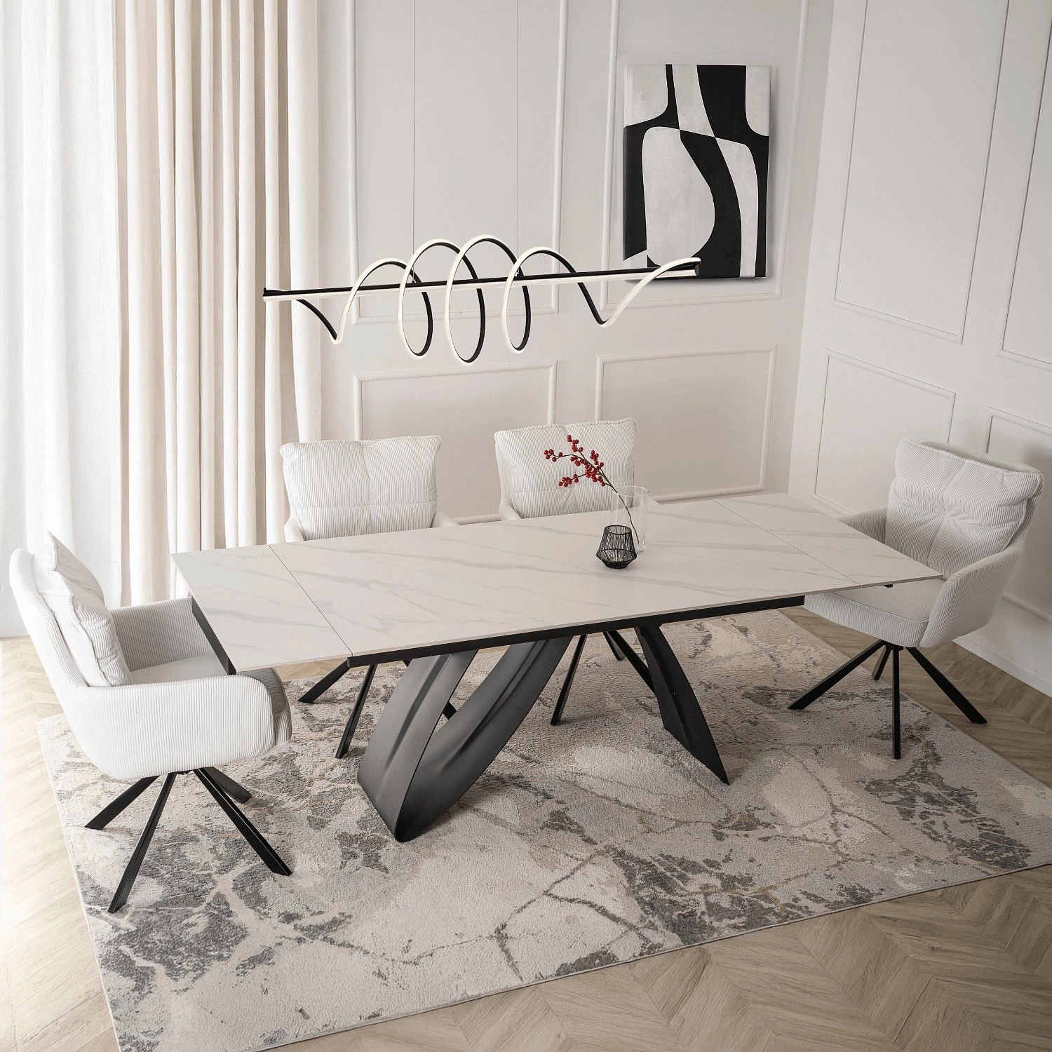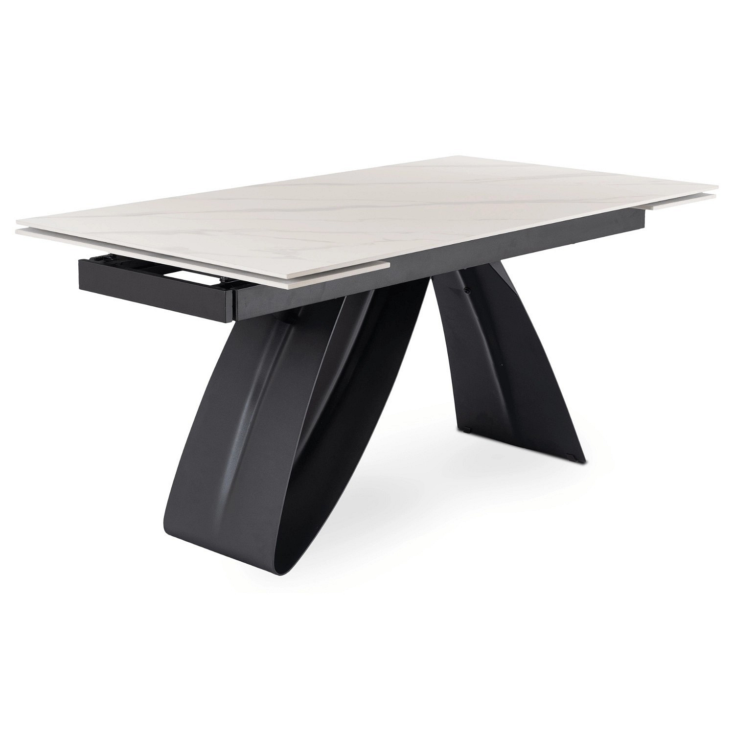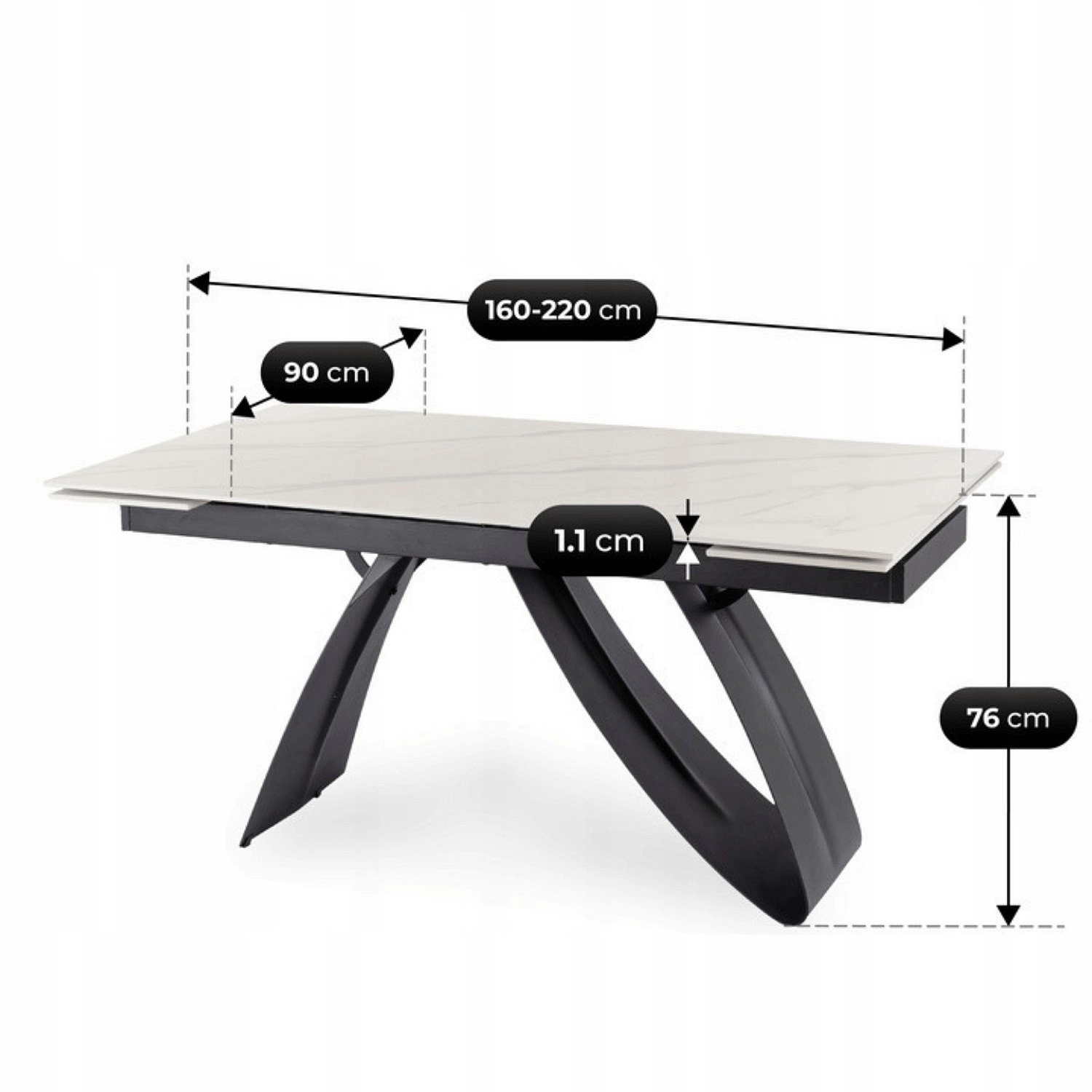Stůl DEVON Keramický Rozkládací 160-220 cm Bílý Mramor/Černý