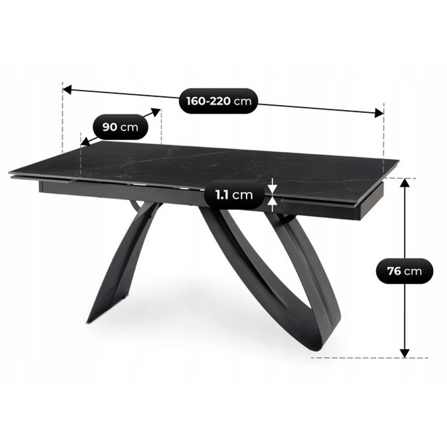 Stůl DEVON Keramický Rozkládací 160-220 cm Černý Mramor/Černý