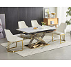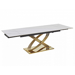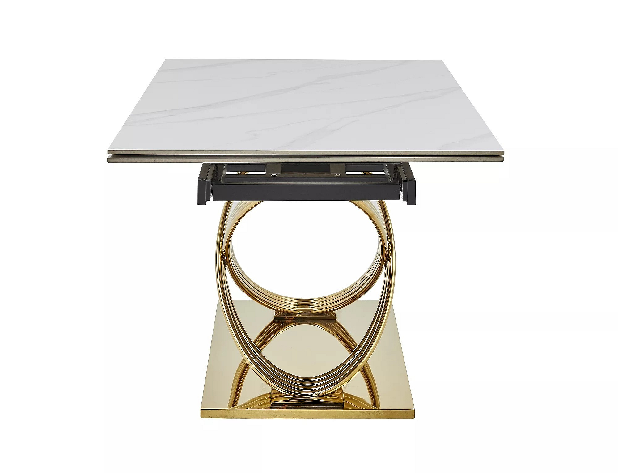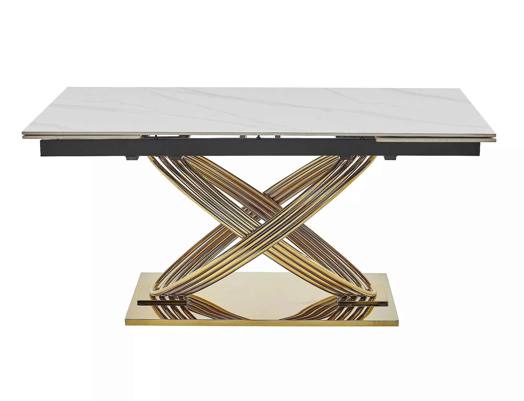 Jídelní stůl HERMES II 160(240)x90cm, Efekt bílého mramoru/Zlatá