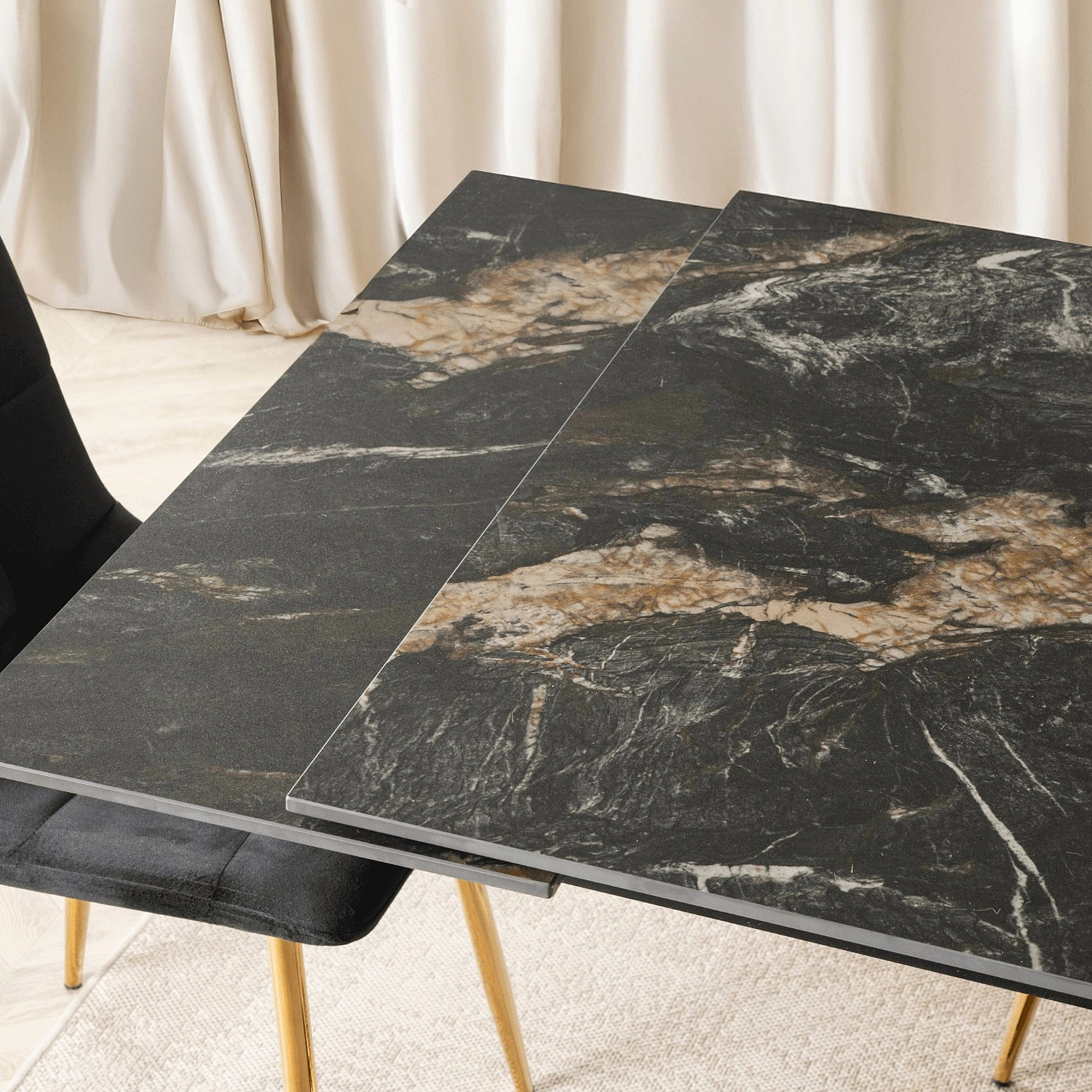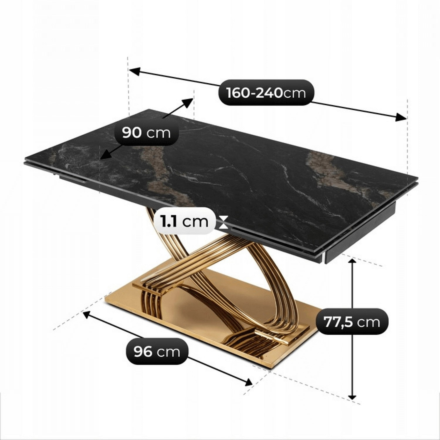Stůl IBIZA Keramický Rozkládací 160-240 cm Černý Mramor/Zlatý