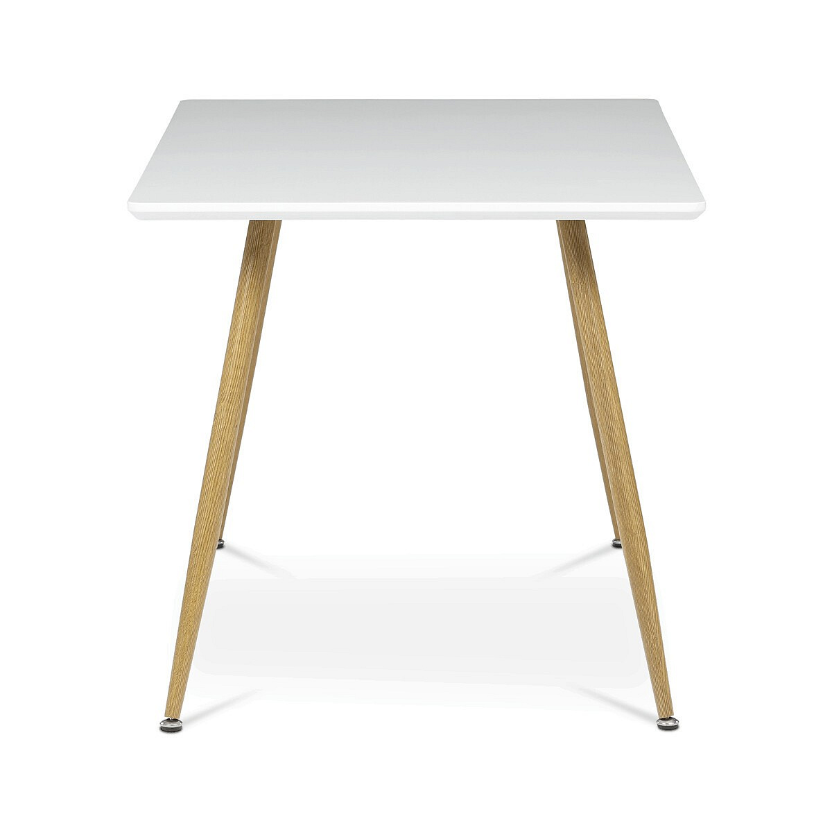 Jídelní stůl značky Autronic v minimalistickém skandinávském stylu přináší lehkost a eleganci do každého interiéru. Bílá matná deska z MDF materiálu je odolná a snadno udržovatelná, zatímco stabilní kovové nohy v dekoru přírodního dubu dodávají stolu šarm. Díky svému kompaktnímu rozměru je ideální pro menší jídelny nebo kuchyně. Praktické kónické nohy s kyvnými kluzáky zajistí stabilitu i na nerovném povrchu. Tento stůl je perfektní volbou pro ty, kteří hledají funkčnost spojenou s moderním designem.
