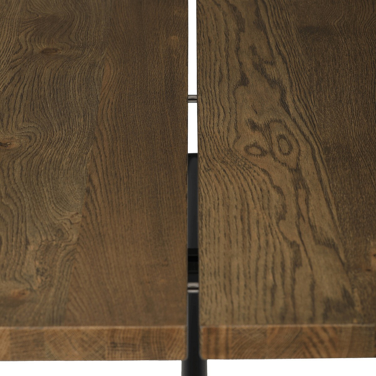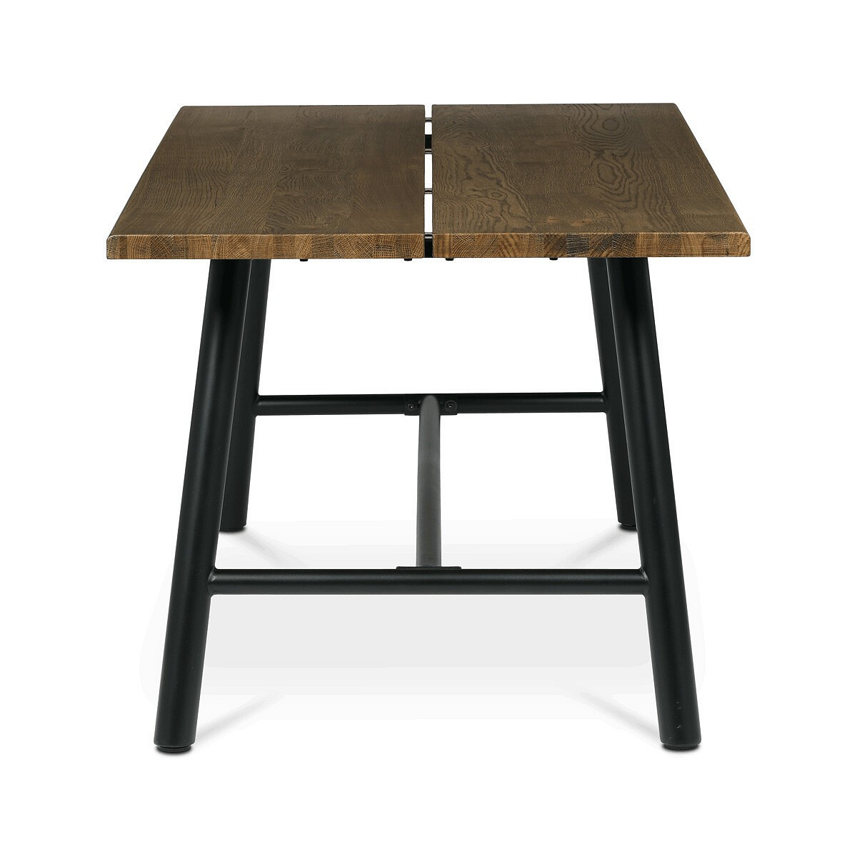 Jídelní stůl značky Autronic v industriálním stylu je skvělou volbou pro rodinné večeře. Jeho dýhová deska v dekoru ořechu dodává interiéru teplý a přírodní nádech, zatímco černé kovové nohy zajišťují stabilitu a odolnost. Obdélníkový tvar a matný povrch podtrhují moderní vzhled stolu. Díky robustní konstrukci se tento stůl stane centrálním prvkem každé jídelny. Stůl se skládá ze dvou samostatných kusů desky, což podtrhuje jeho nadčasový design.